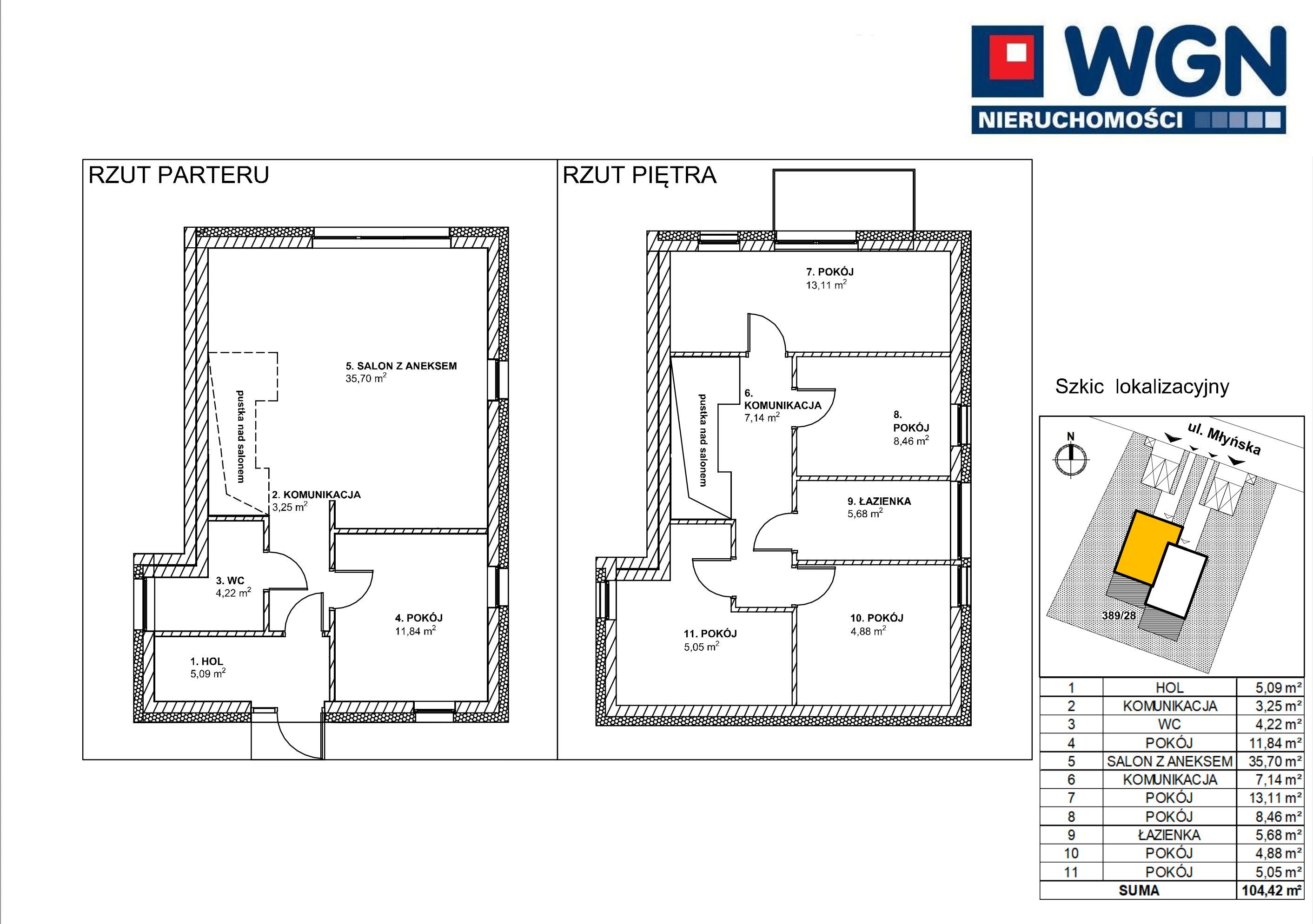 Łączna powierzchnia użytkowa lokalu A: 104,42 m2
