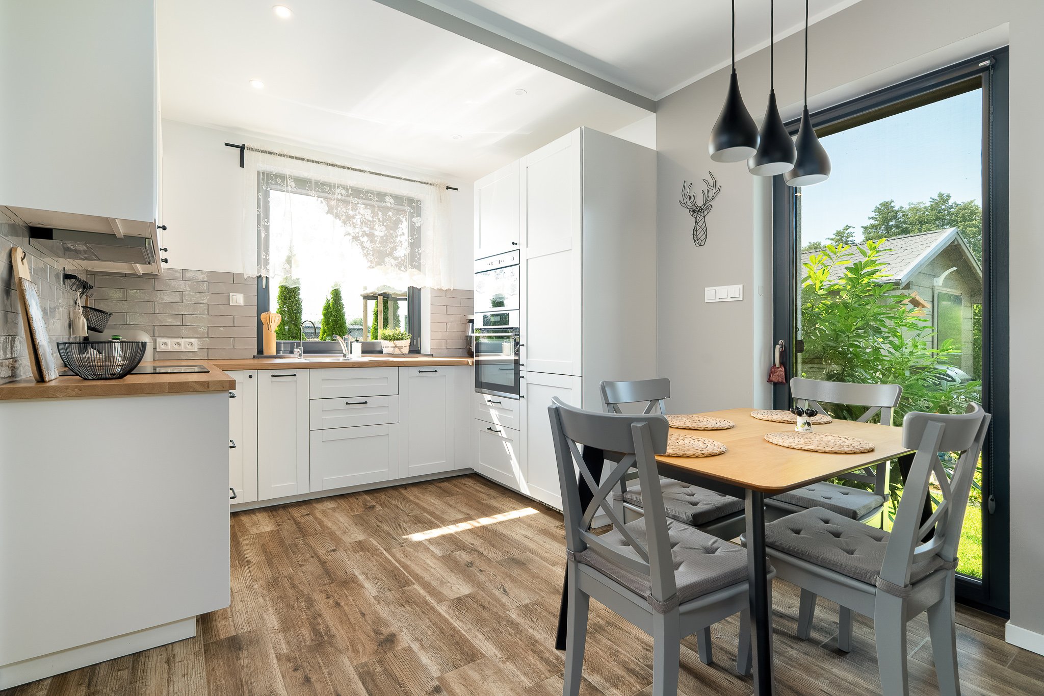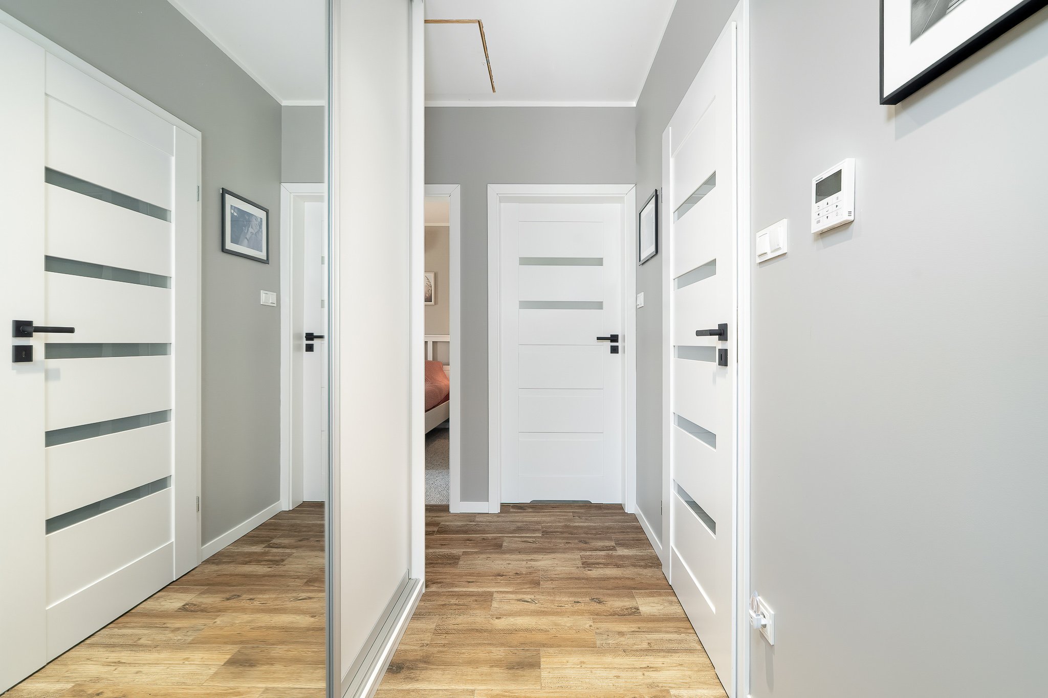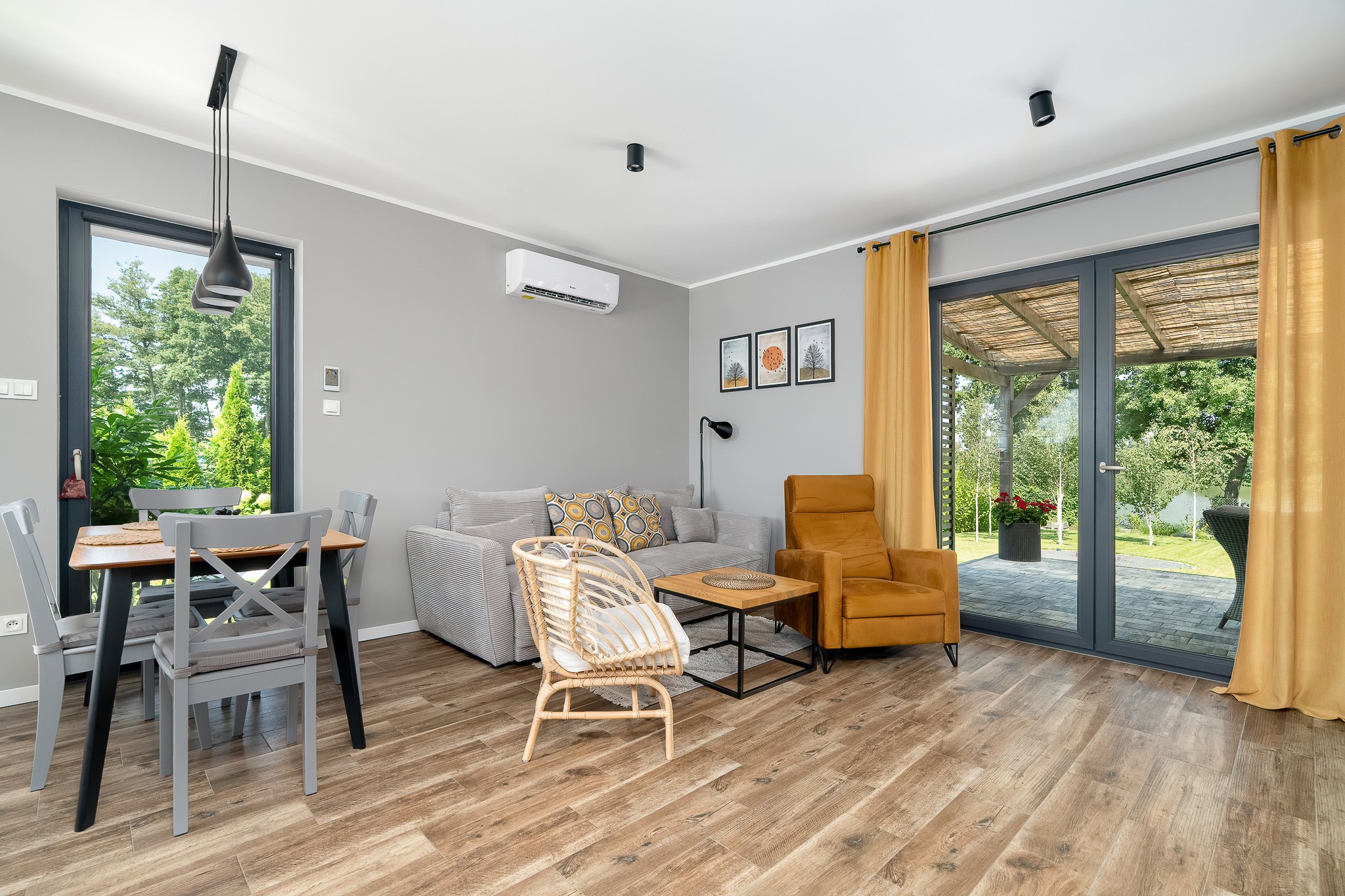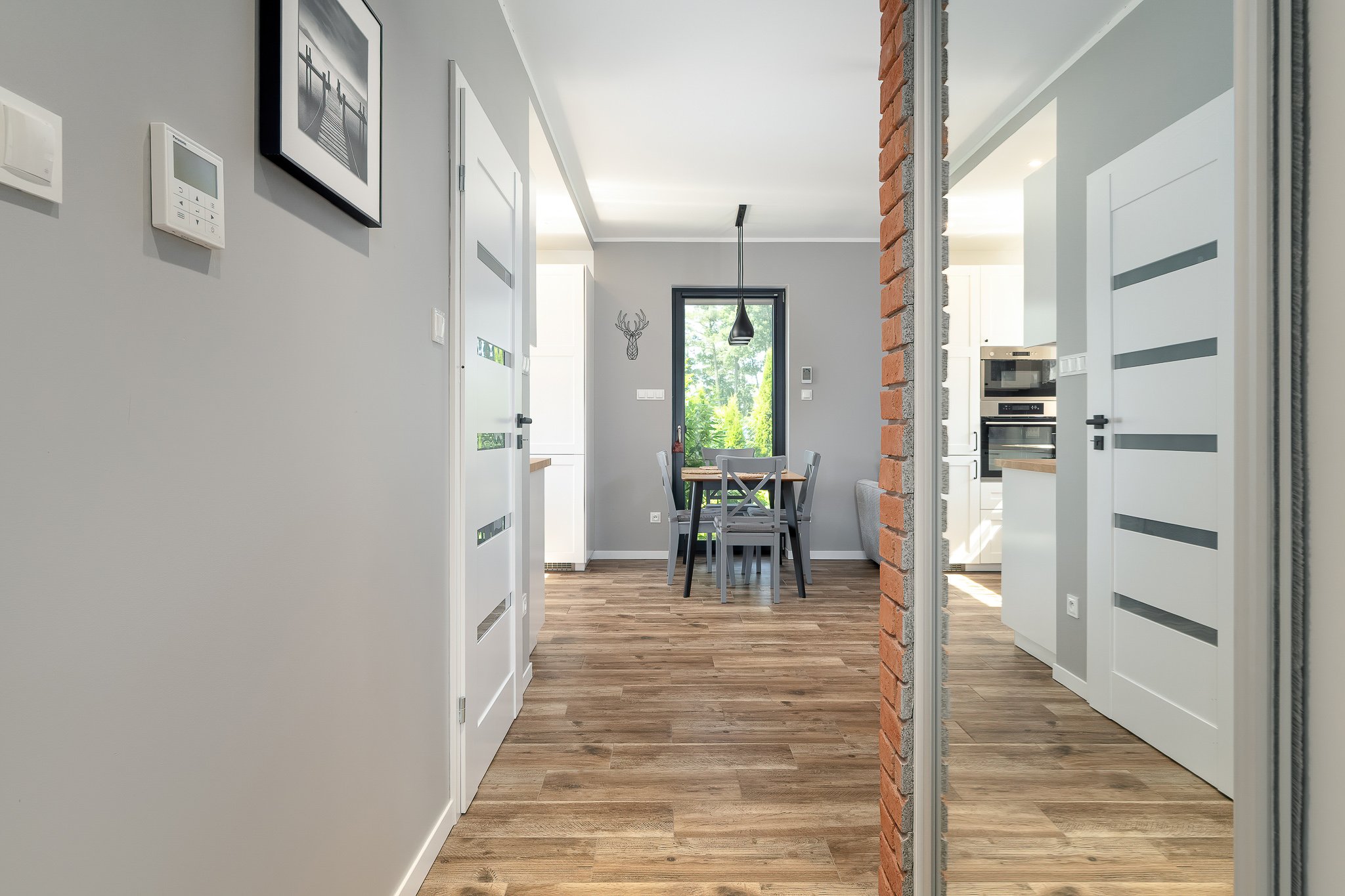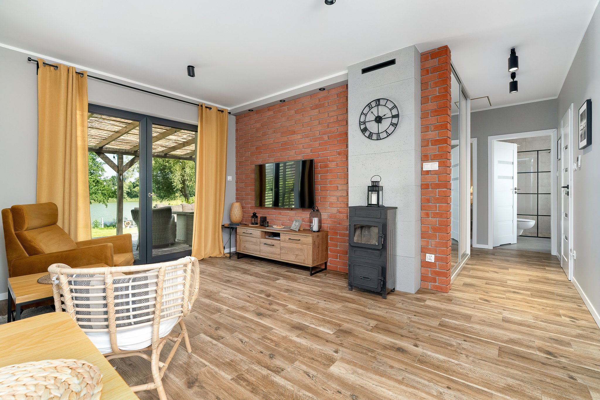 Ten wyjątkowy dom to połączenie elegancji, komfortu i funkcjonalności, stworzone z myślą o najwyższym standardzie życia. Serce domu stanowi przestronny salon otwarty na nowoczesną kuchnię i przytulną jadalnię – tworząc jasną, harmonijną przestrzeń dzienną idealną do codziennego życia i spotkań z rodziną oraz przyjaciółmi. Duże przeszklenia w salonie zapewniają naturalne światło przez cały dzień oraz spektakularny widok na ogród i pobliskie jezioro z prywatnym pomostem, który staje się przedłużeniem strefy relaksu. Na parterze znajdują się także dwa komfortowe pokoje, które mogą pełnić funkcję sypialni, gabinetu lub pokoju dla gości. Przestronna łazienka zapewnia wygodę i elegancję, a praktyczne pomieszczenie gospodarcze ułatwia utrzymanie porządku w domu. Dodatkowo wiatrołap i korytarz łączą wszystkie strefy w spójną i funkcjonalną całość, tworząc harmonijną przestrzeń sprzyjającą komfortowi i relaksowi.