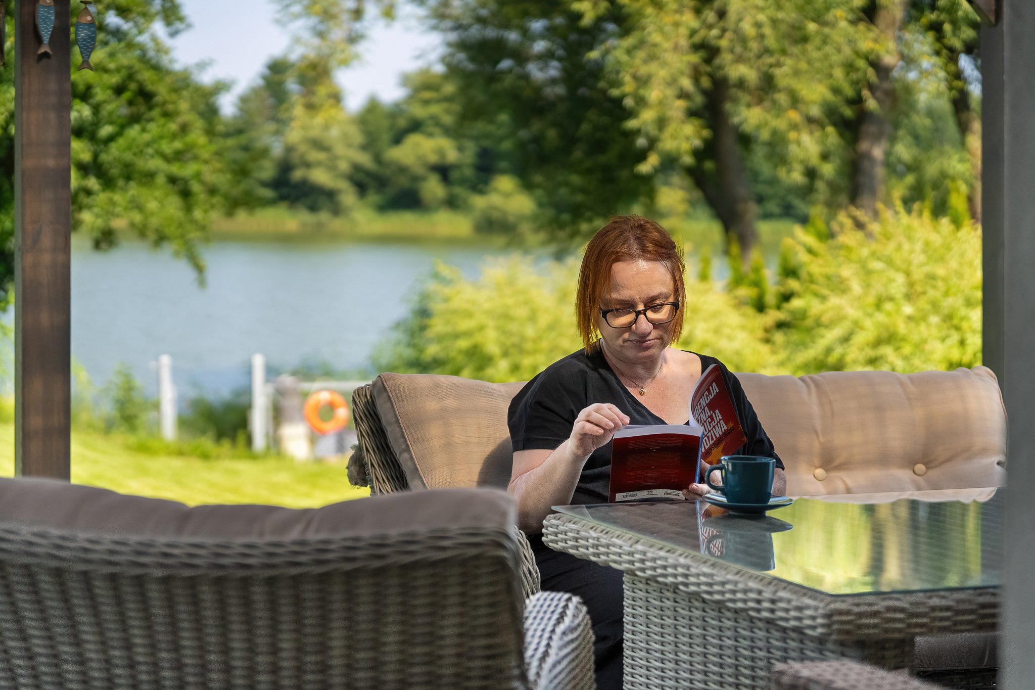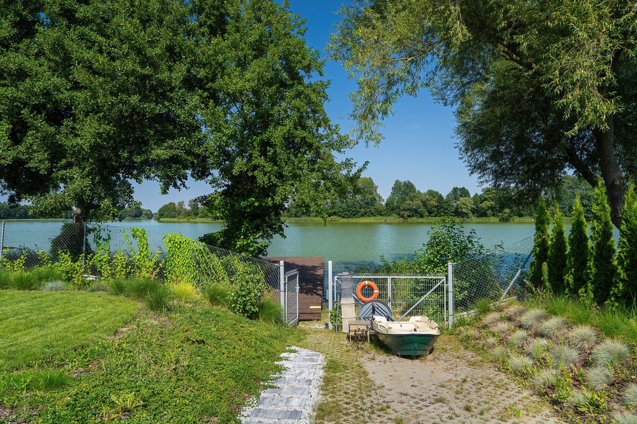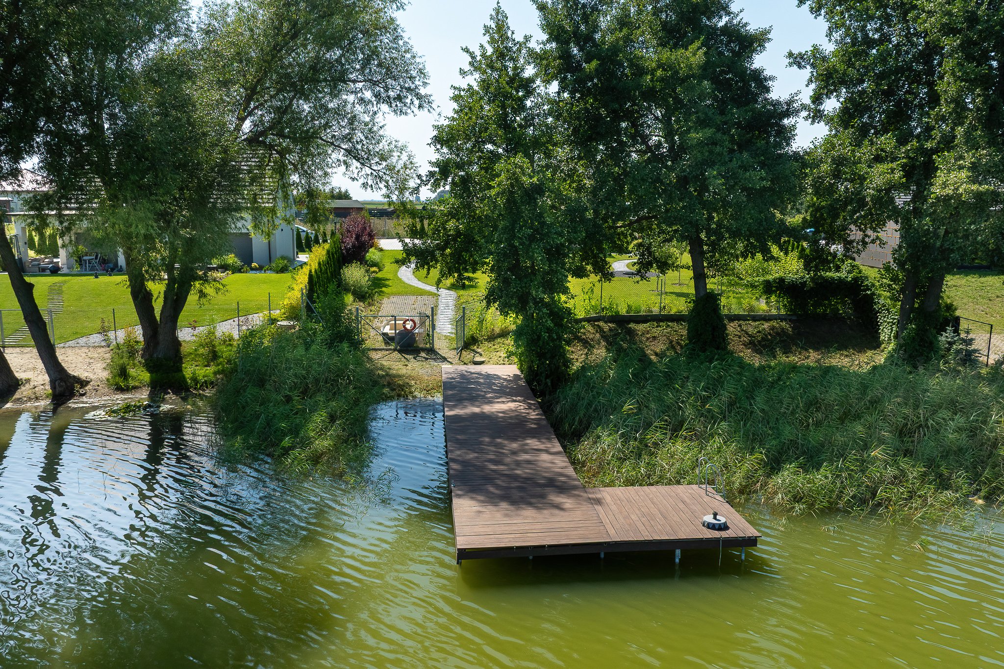 Dom harmonijnie łączy w sobie elegancki, luksusowy charakter z przytulnym, domowym ciepłem, tworząc przestrzeń, która nie tylko zachwyca wysokim standardem wykończenia, ale także emanuje atmosferą sprzyjającą odpoczynkowi i relaksowi. Duży taras harmonijnie łączy wnętrze domu z ogrodem i jeziorem, oferując niezwykłą przestrzeń do wypoczynku z panoramicznym widokiem na wodę. Uzupełnieniem zagospodarowania działki jest funkcjonalny domek gospodarczy, w którym zmieszczą się wszystkie akcesoria ogrodowe i sprzęty sezonowe.