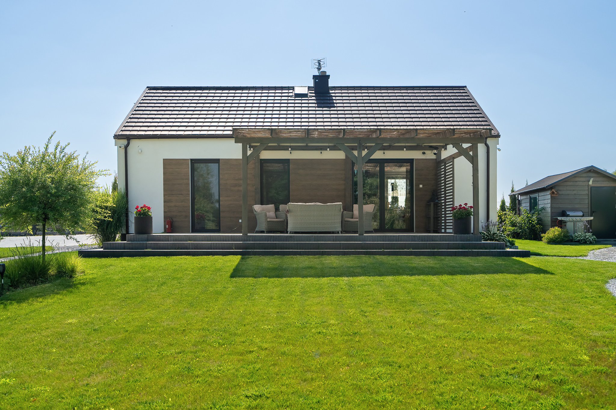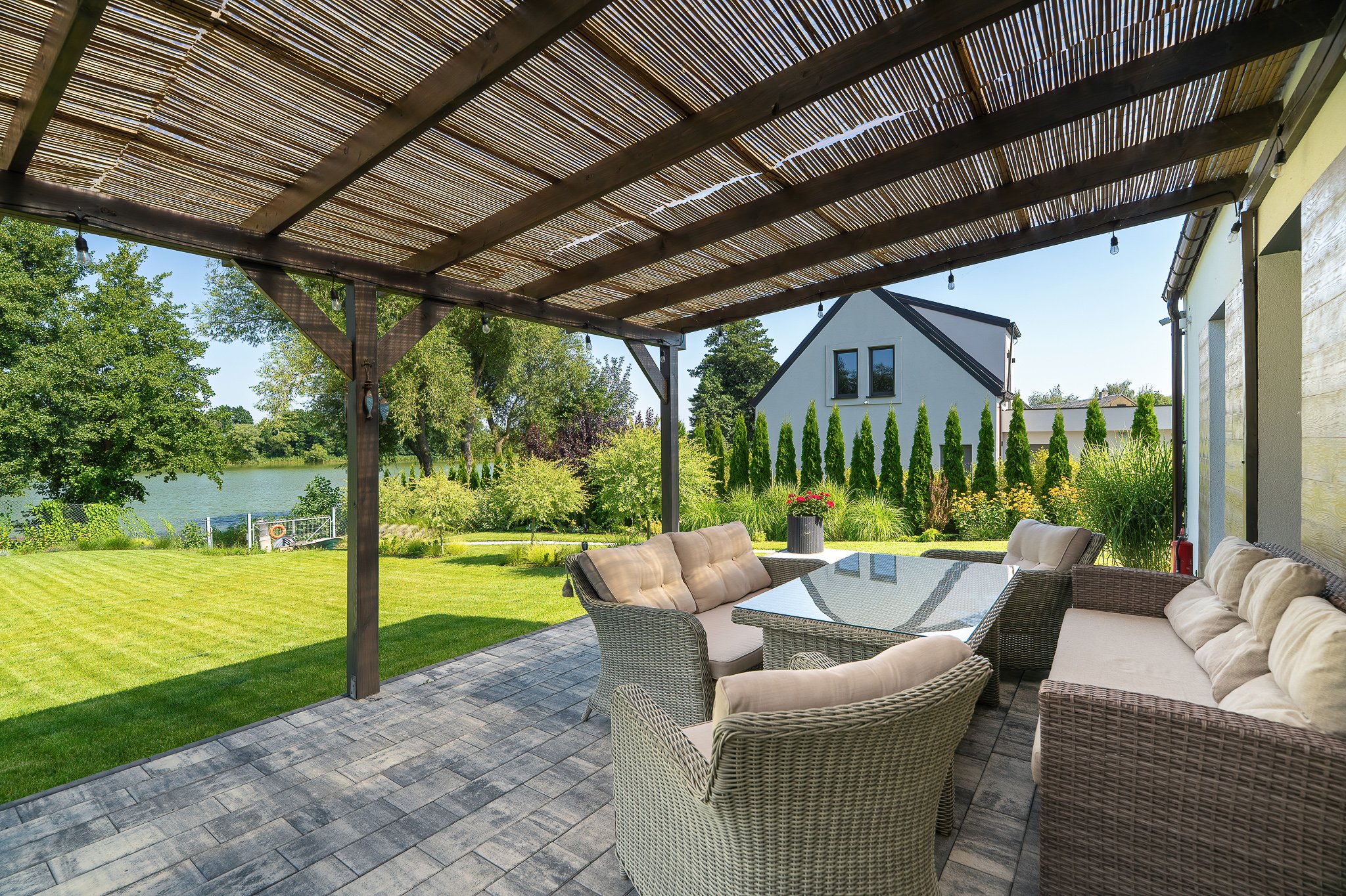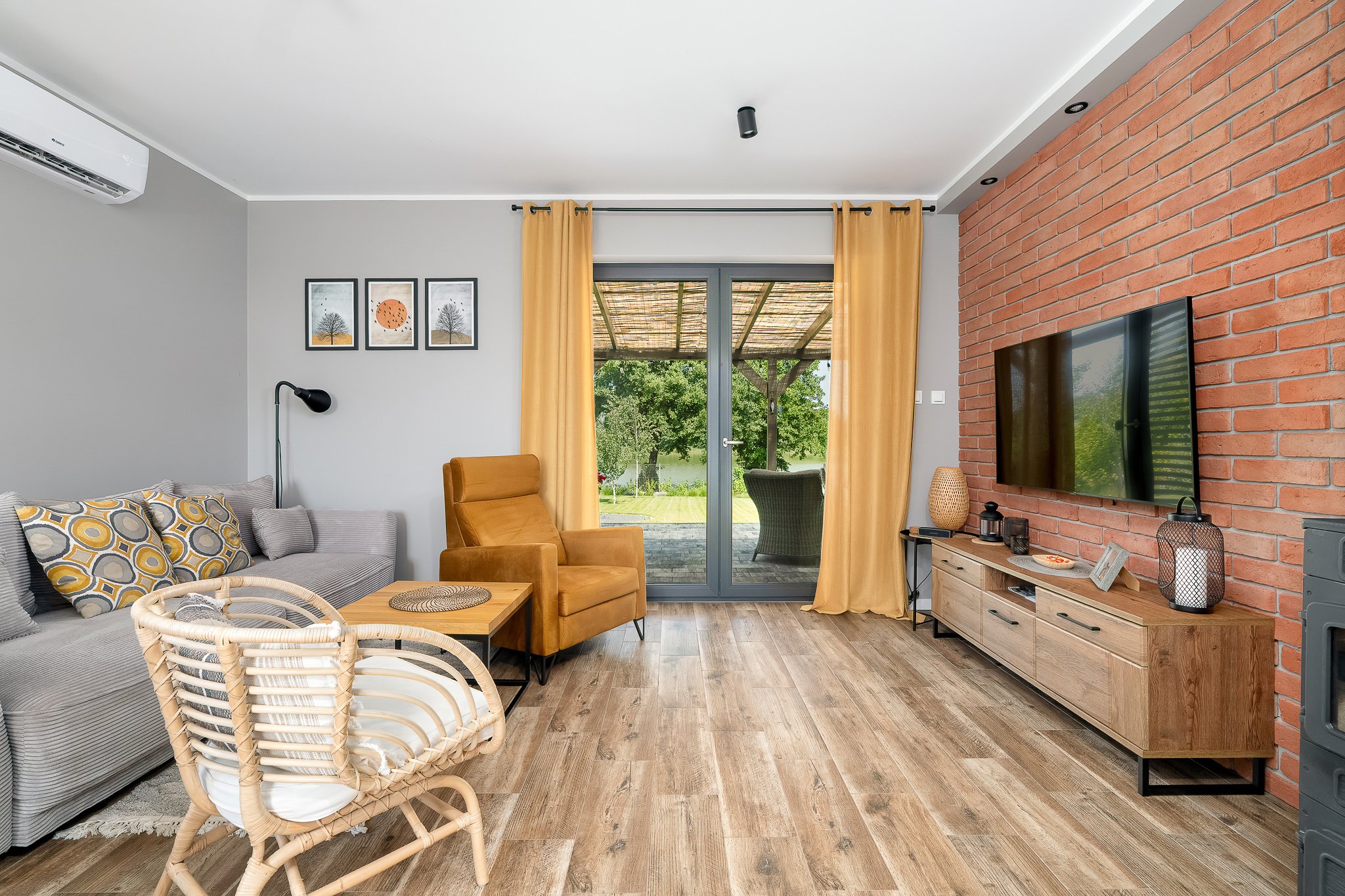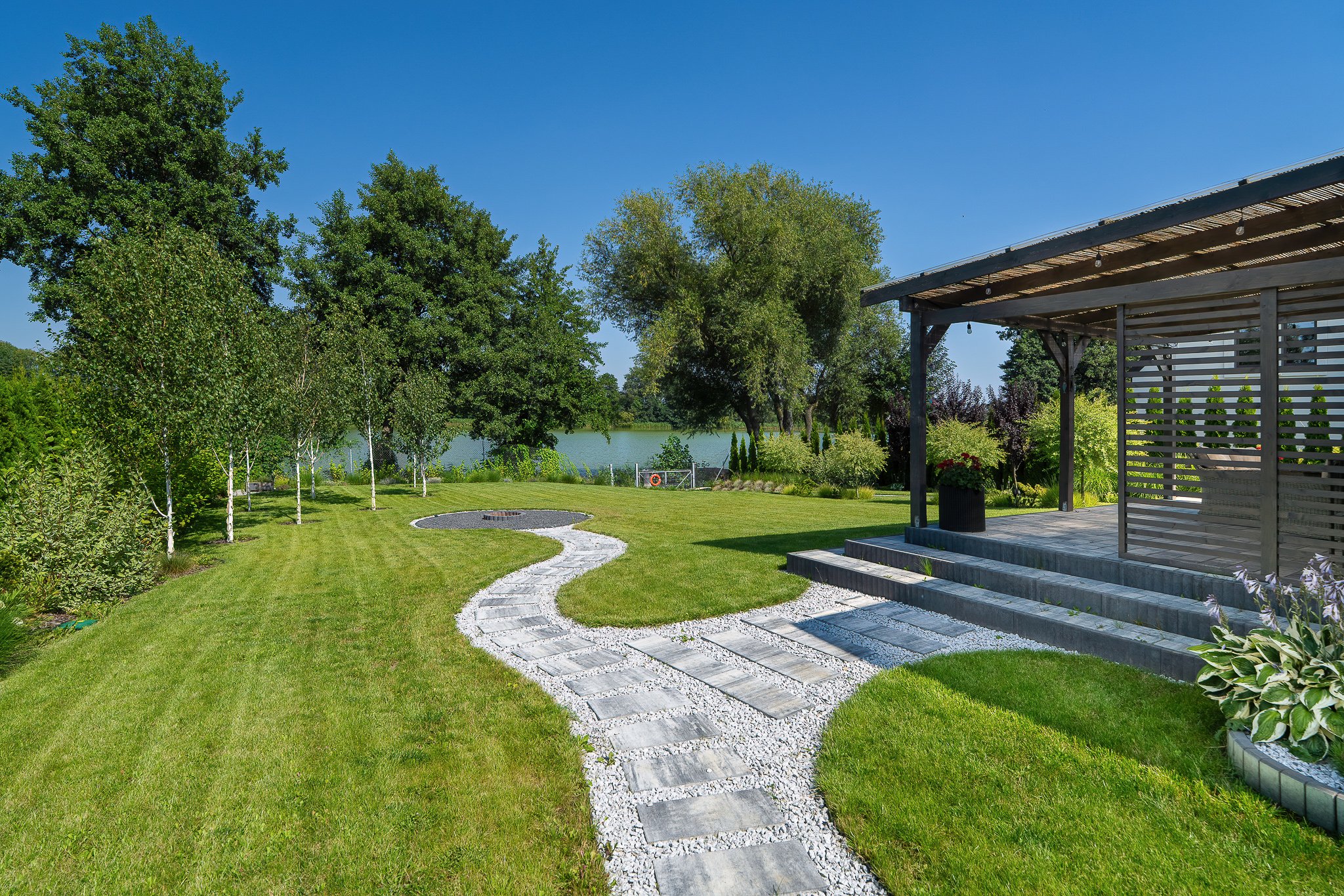 Dom harmonijnie łączy w sobie elegancki, luksusowy charakter z przytulnym, domowym ciepłem, tworząc przestrzeń, która nie tylko zachwyca wysokim standardem wykończenia, ale także emanuje atmosferą sprzyjającą odpoczynkowi i relaksowi. Duży taras harmonijnie łączy wnętrze domu z ogrodem i jeziorem, oferując niezwykłą przestrzeń do wypoczynku z panoramicznym widokiem na wodę. Uzupełnieniem zagospodarowania działki jest funkcjonalny domek gospodarczy, w którym zmieszczą się wszystkie akcesoria ogrodowe i sprzęty sezonowe.