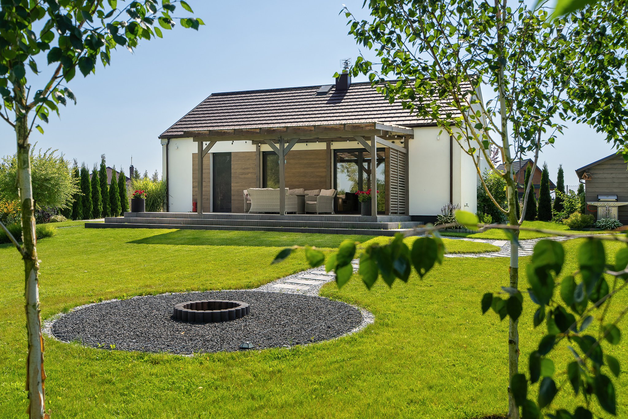 *Ogród został wyposażony w instalację do automatycznego podlewania, co zapewnia wygodę w pielęgnacji zieleni. W budynku rozprowadzono instalację alarmową, przygotowaną do podłączenia i dostosowania do indywidualnych potrzeb. Dodatkowo zamontowano monitoring, który zwiększa bezpieczeństwo całej posesji.