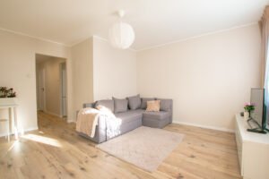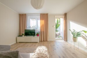 Lokal znajduje się na parterze w piętrowym budynku z 2000 roku. Mieszkanie w 2025 roku przeszło remont (m.in. nowe wodoodporne podłogi, drzwi wewnętrzne oraz wejściowe antywłamaniowe, malowanie). Wygodna kuchnia z dużym blatem roboczym wyposażona jest we wszystkie niezbędne sprzęty AGD: lodówka z zamrażarką, zmywarka, piekarnik, płyta indukcyjna oraz okap. W łazience znajduje się wanna z funkcją prysznica oraz wolnostojąca pralka.