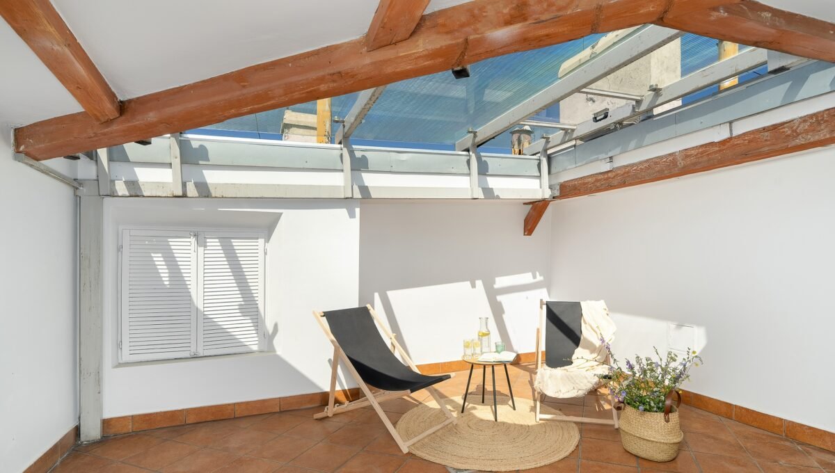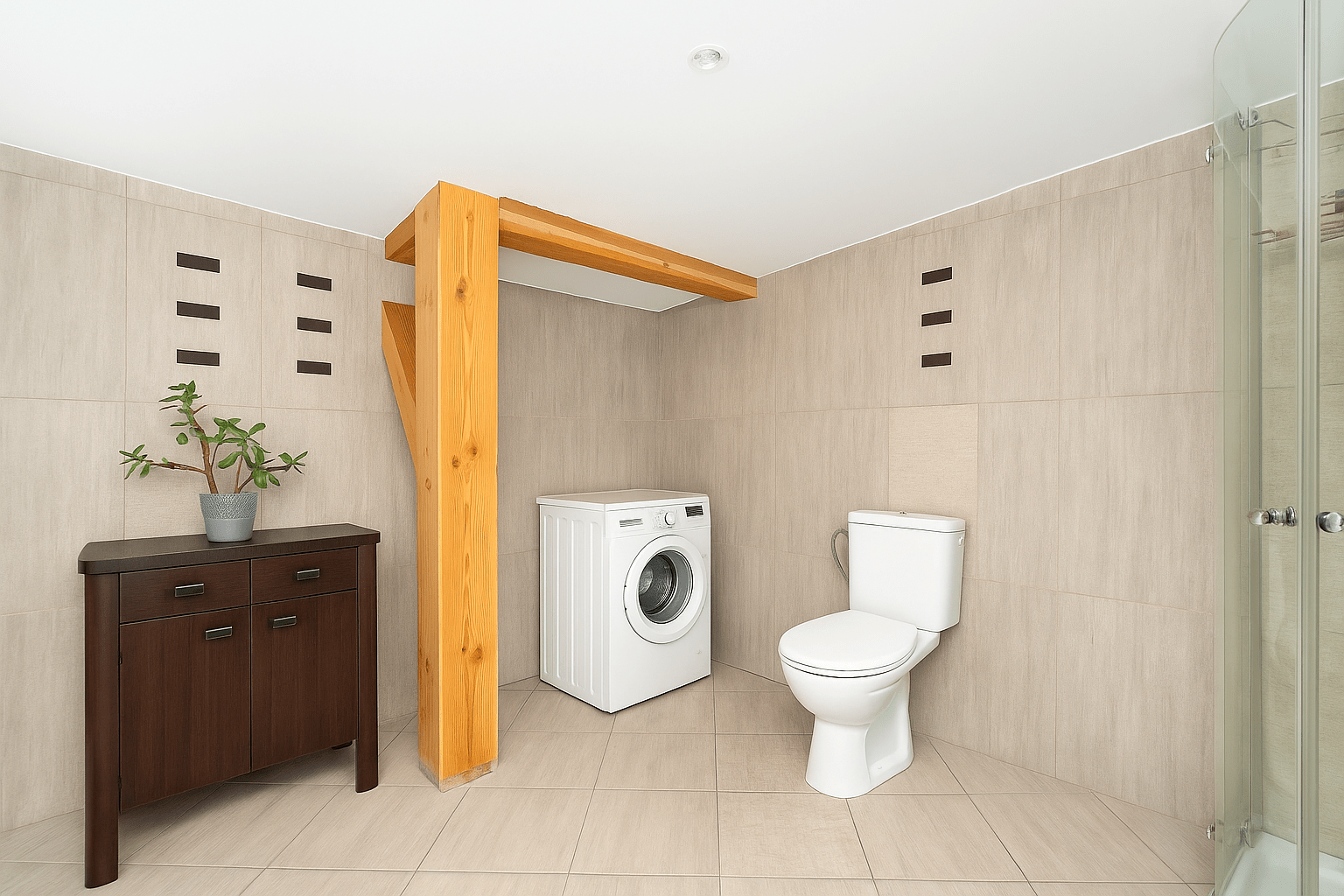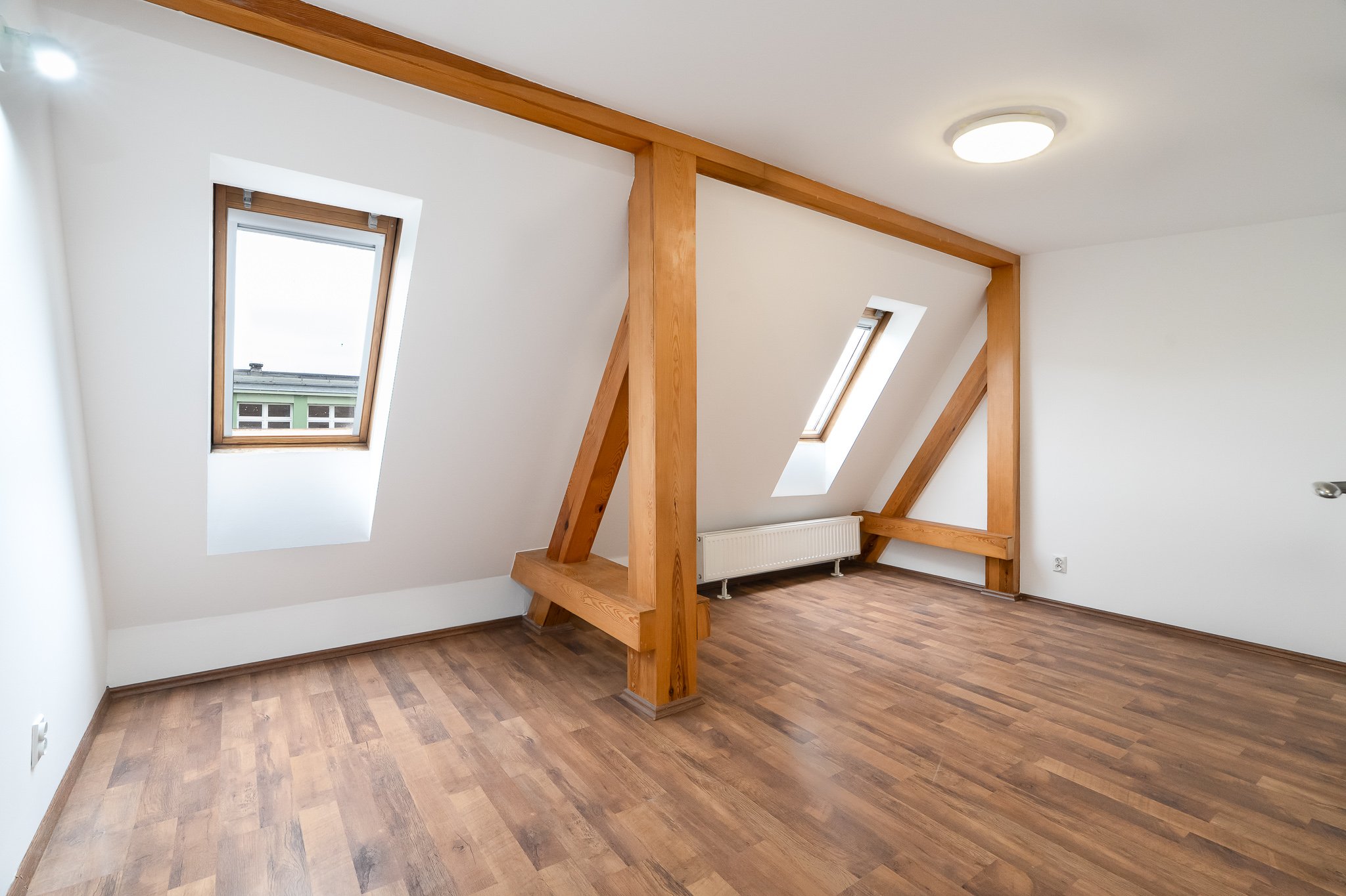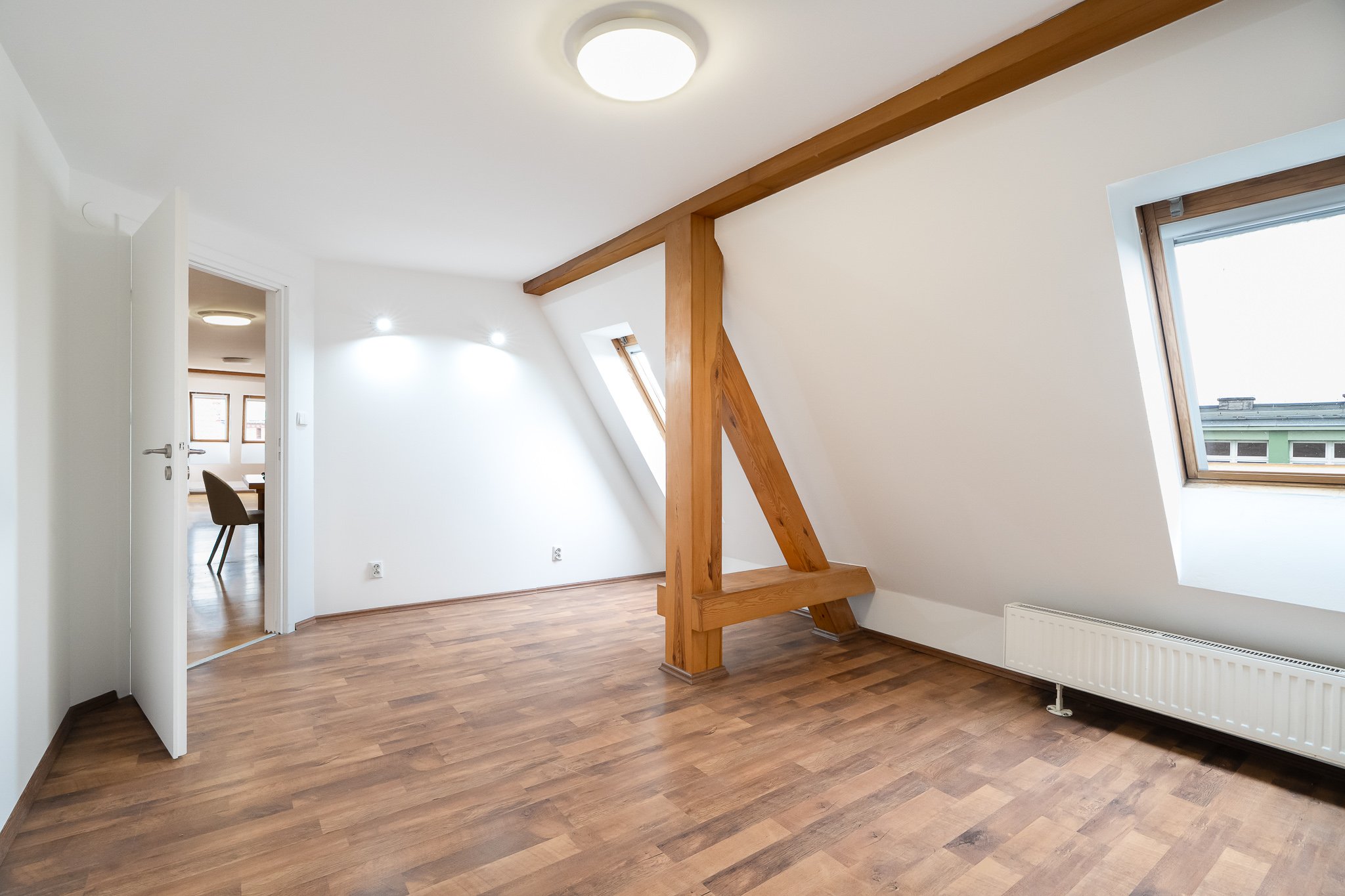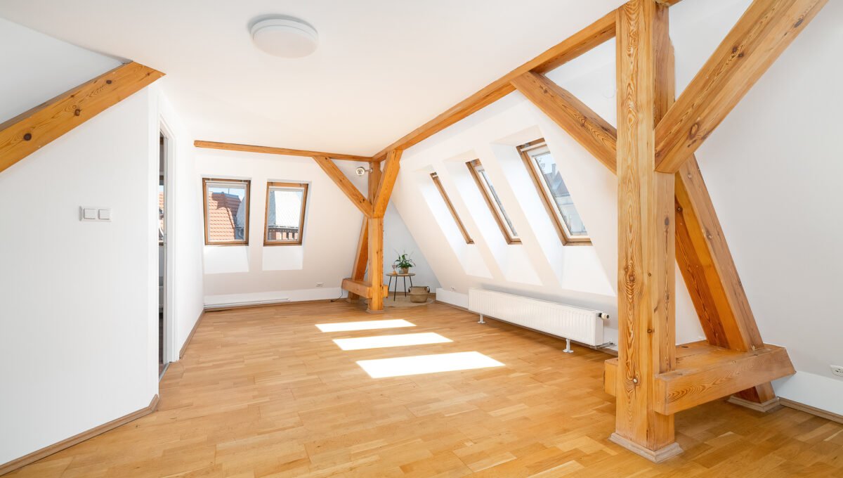 Trzy niezależne pokoje oferują wiele możliwości aranżacyjnych – mogą pełnić funkcję sypialni, pracowni lub pokojów dziecięcych. Każdy z nich posiada swój unikalny układ i urok – niestandardowe linie ścian i sufity dodają im charakteru, a drewniane wykończenia podkreślają spójność stylistyczną całego mieszkania.