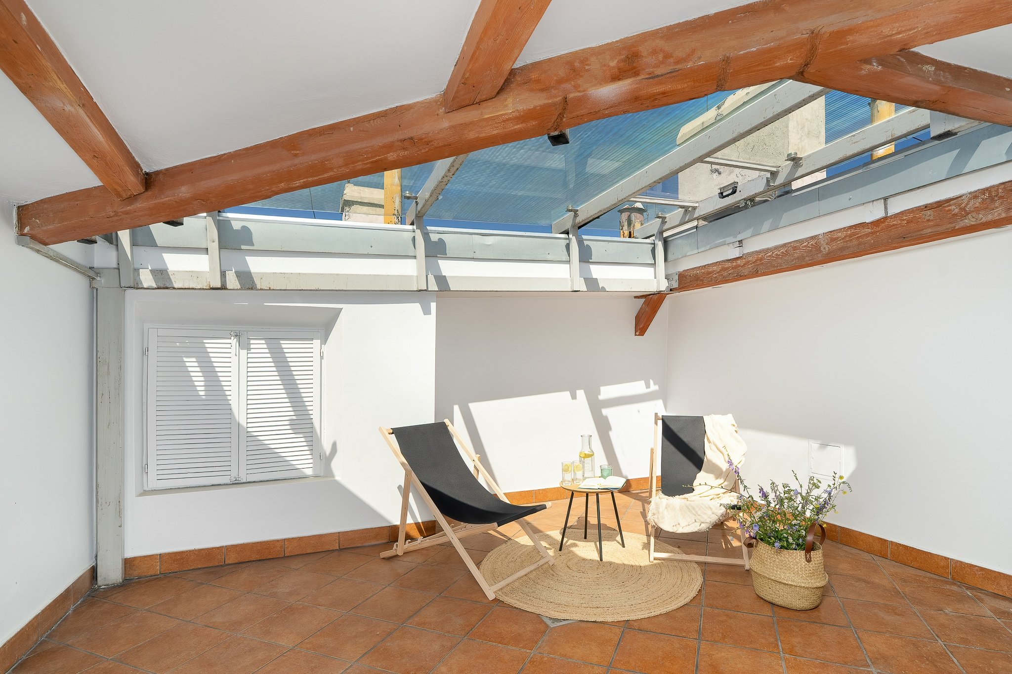 Dodatkowym atutem nieruchomości jest przeszklony taras, stanowiący kameralną strefę relaksu dostępną niemal o każdej porze roku. Zadaszenie z przezroczystego szkła zapewnia mnóstwo naturalnego światła, a jednocześnie chroni przed deszczem. Przestrzeń ta idealnie nadaje się na poranną kawę, czy spokojny moment z ulubioną lekturą.