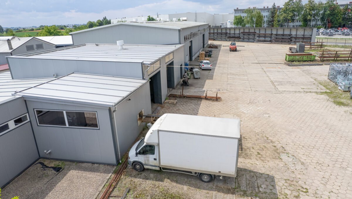 Hala magazynowa, wybudowana w 2011 roku, to nowoczesny, parterowy obiekt dobudowany do istniejącego budynku warsztatowego o łącznej powierzchni użytkowej 885,0 m2. Konstrukcja opiera się na stalowym szkielecie, co gwarantuje wytrzymałość i elastyczność przestrzeni. Wysokość od podłogi do spodu konstrukcji wynosi 5,50 m, zapewniając komfortowe warunki pracy i swobodę aranżacji wnętrza. Dach oraz ściany wykonane są z wysokiej jakości płyt warstwowych, które skutecznie izolują i chronią obiekt przed czynnikami zewnętrznymi.