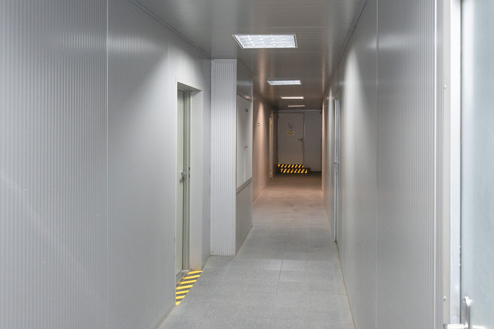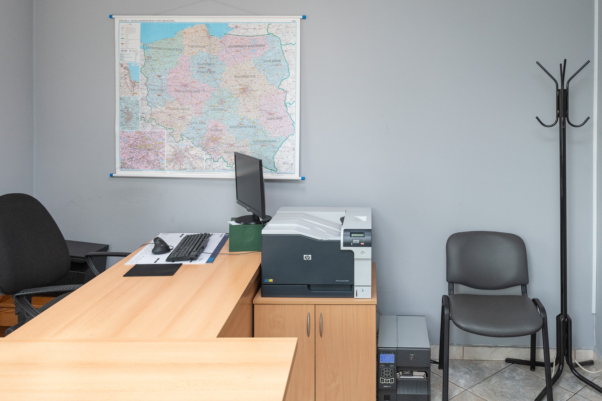 Wejście prowadzi przez wiatrołap do centralnej strefy komunikacyjnej, która umożliwia sprawne przemieszczanie się pomiędzy wszystkimi częściami obiektu. W części administracyjnej znajdują się trzy niezależne biura, idealne do prowadzenia działalności biurowej, a także toaleta dla pracowników oraz archiwum przeznaczone do przechowywania dokumentacji.