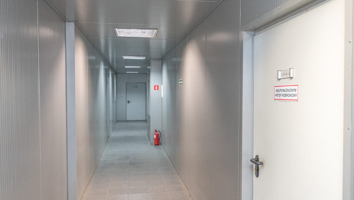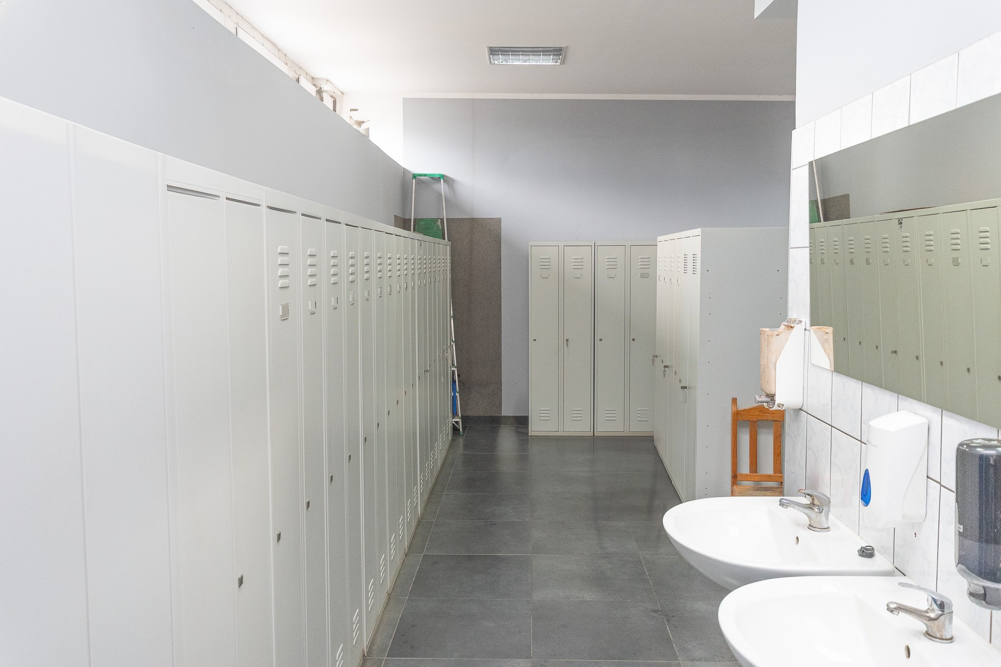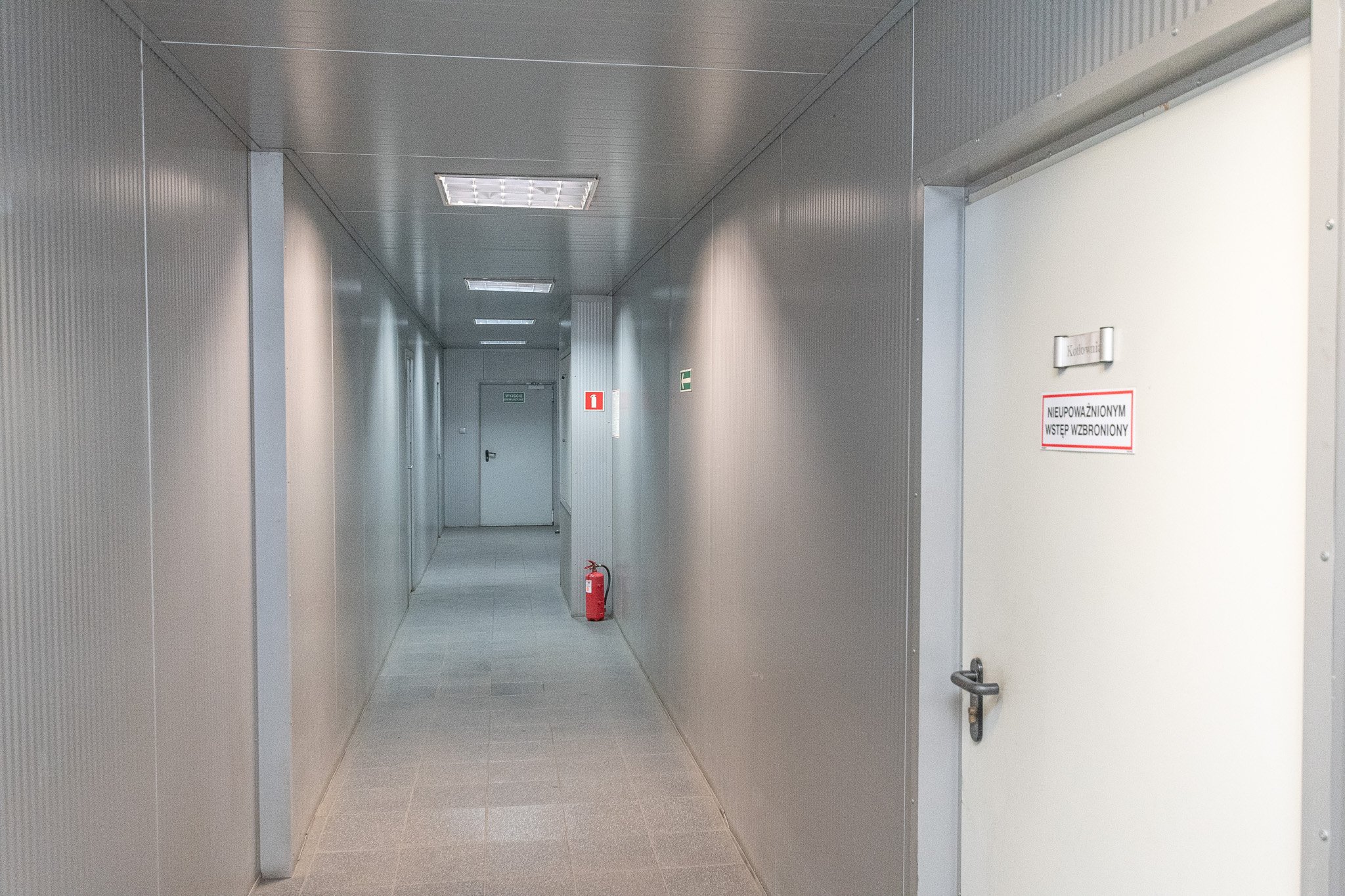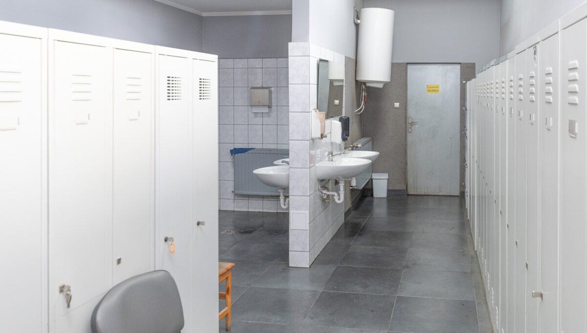 Strefa socjalna dostępna jest zarówno z głównego ciągu komunikacyjnego, jak i bezpośrednio z hali warsztatowej, co ułatwia korzystanie z niej pracownikom produkcyjnym. W jej skład wchodzą szatnia z pełnym zapleczem sanitarnym, wyposażonym w prysznice, toalety i umywalki, oraz przestronna jadalnia umożliwiająca wygodne spożywanie posiłków.