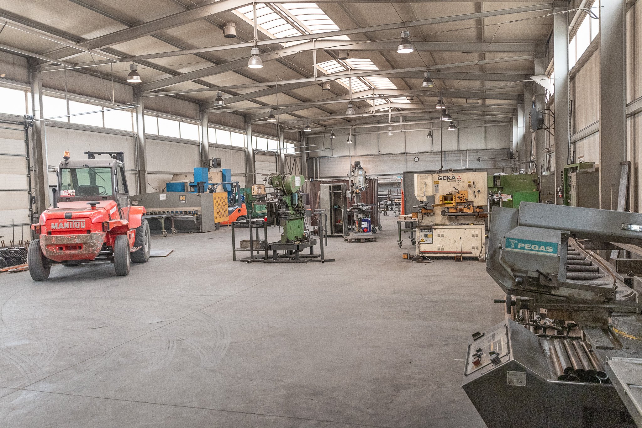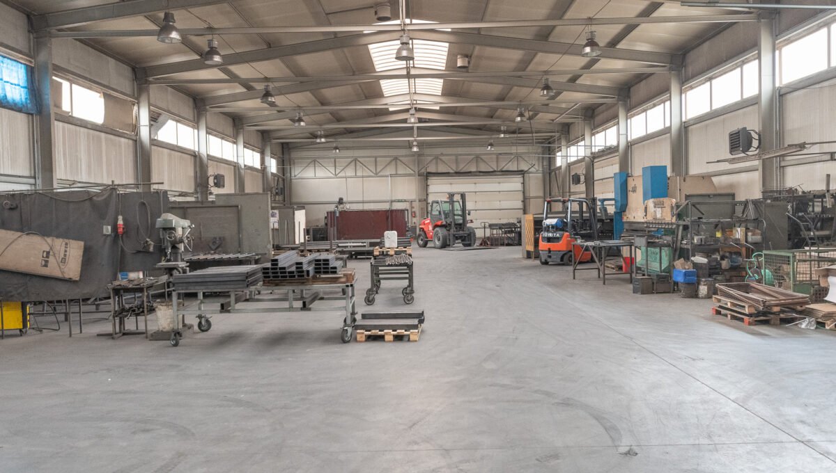 Część produkcyjna obejmuje kilka oddzielnych warsztatów, co pozwala na elastyczne dopasowanie przestrzeni do różnorodnych procesów technologicznych. Całość uzupełnia przestronny magazyn, bezpośrednio sąsiadujący z halami roboczymi, zapewniający wygodne składowanie materiałów i narzędzi. Taki układ pomieszczeń gwarantuje wygodę, funkcjonalność oraz sprawną organizację pracy w każdym segmencie działalności.