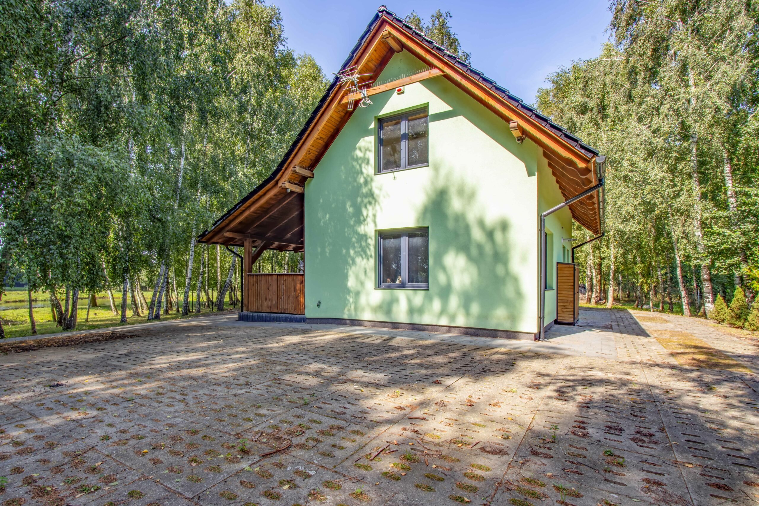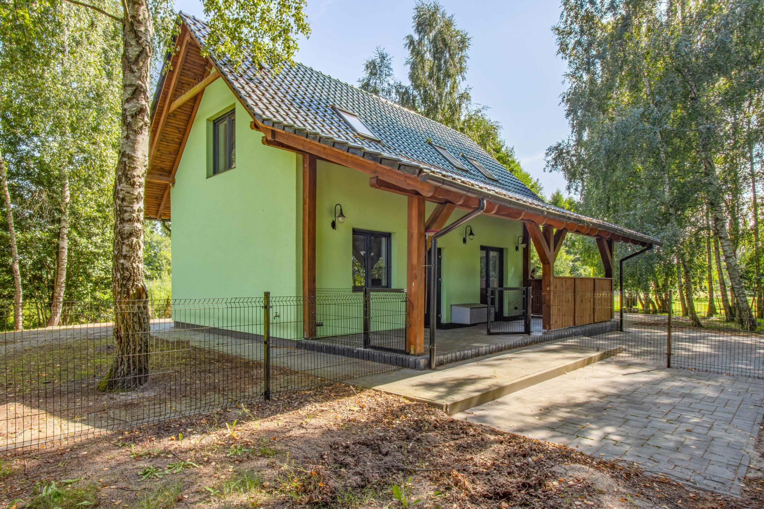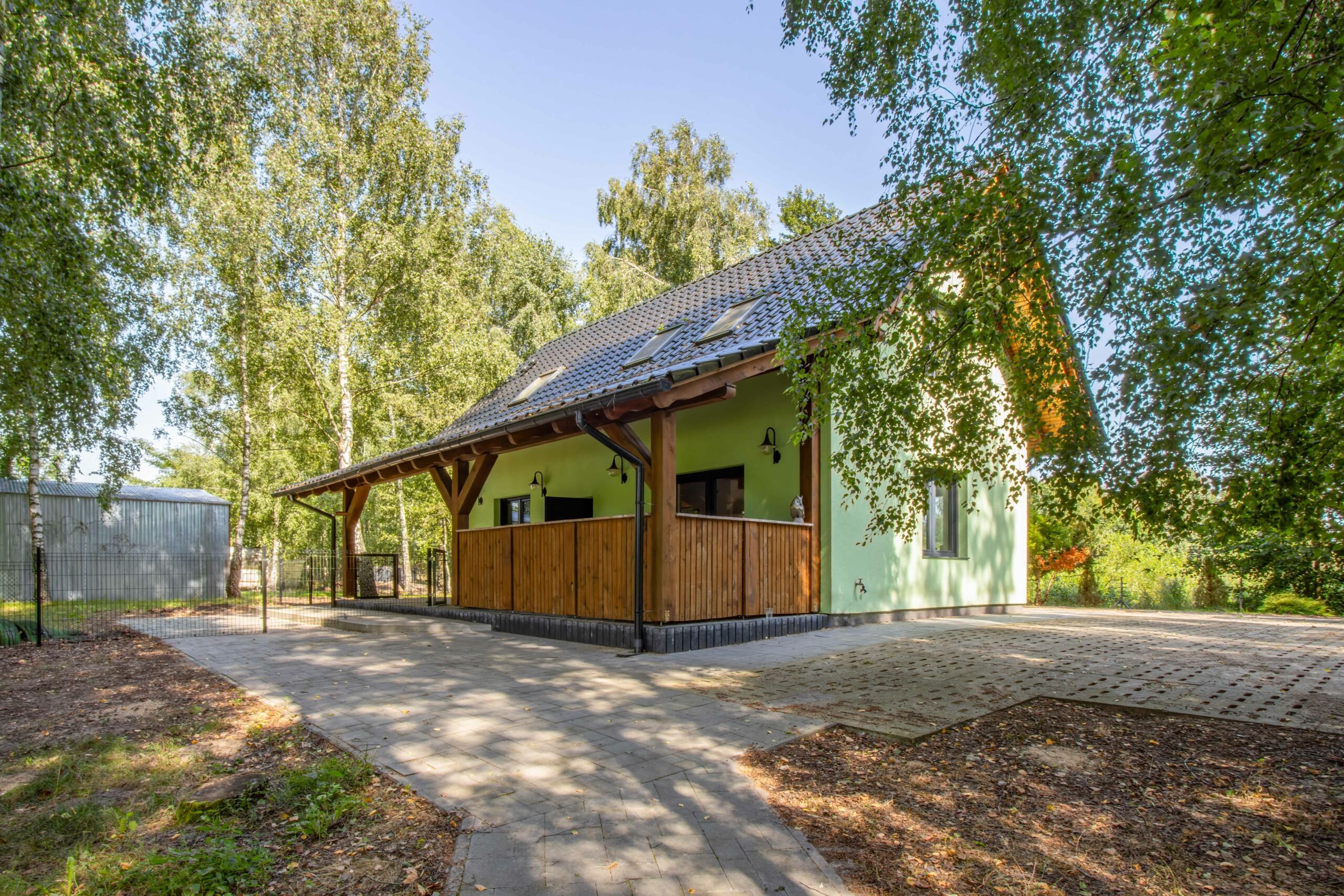 Całość otoczona jest zielenią i licznymi nasadzeniami, które tworzą niezwykle kameralną i prywatną przestrzeń do życia i wypoczynku. Świetnie nada się zarówno jako dom całoroczny, jak i inwestycja pod agroturystykę czy wynajem dla turystów szukających odpoczynku od miejskiego zgiełku.