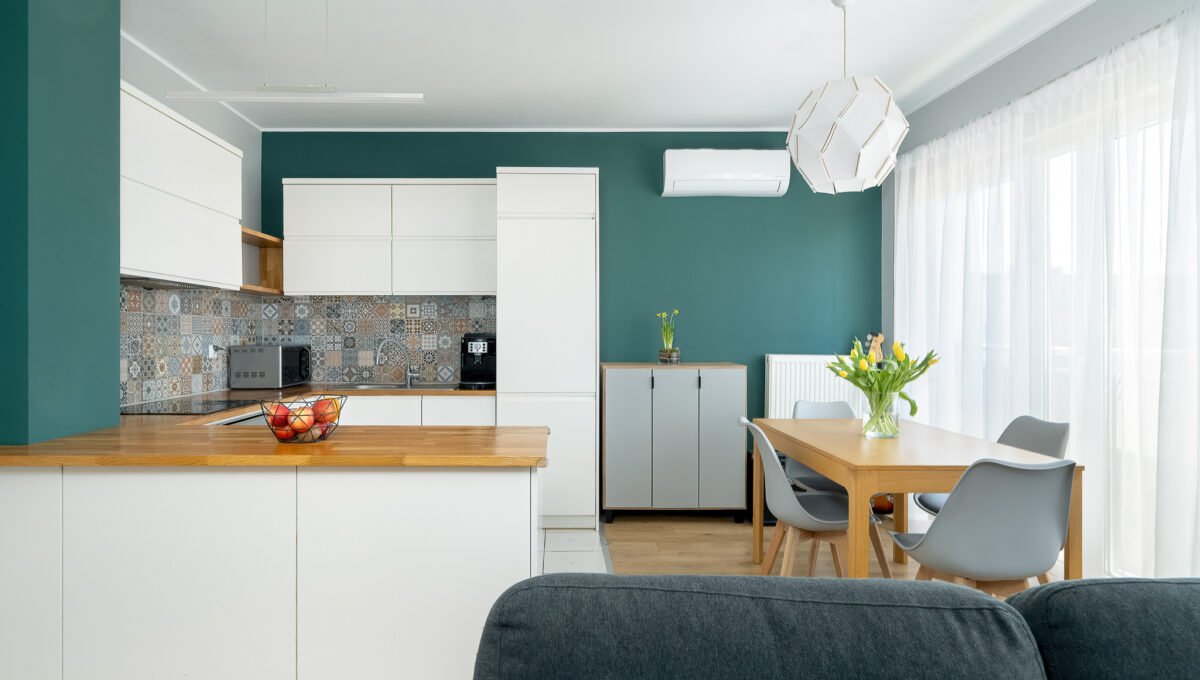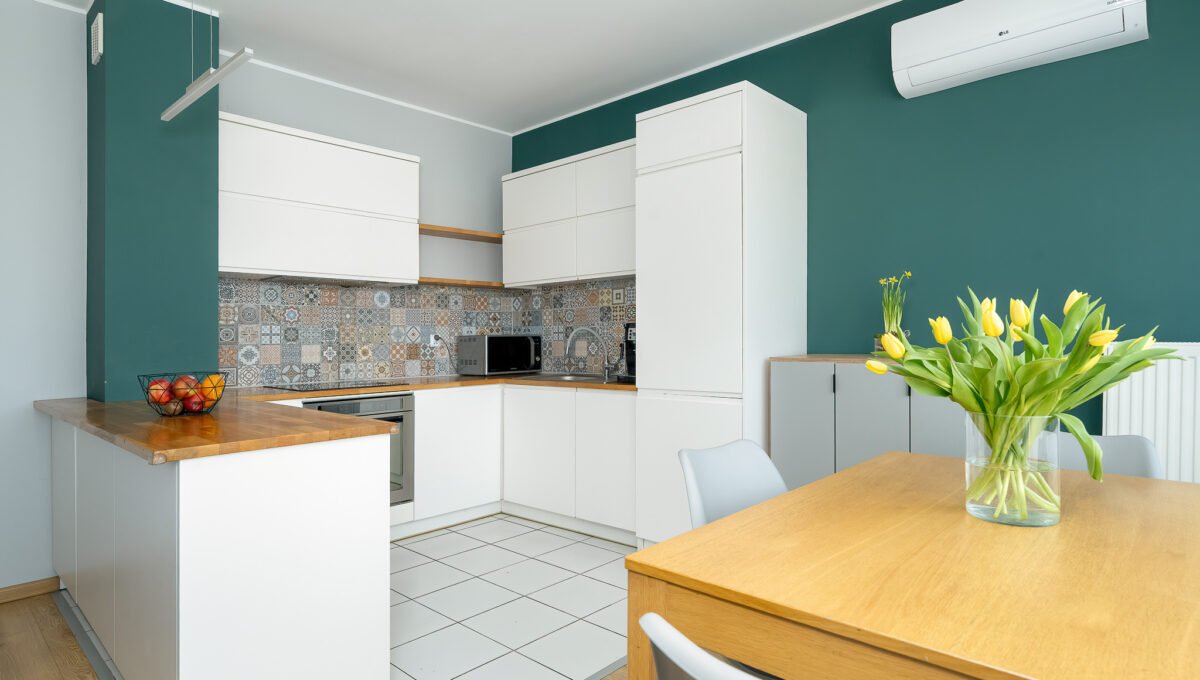 W salonie jest zamontowana klimatyzacja firmy LG z opcją chłodzenia, osuszania i ogrzewania.
