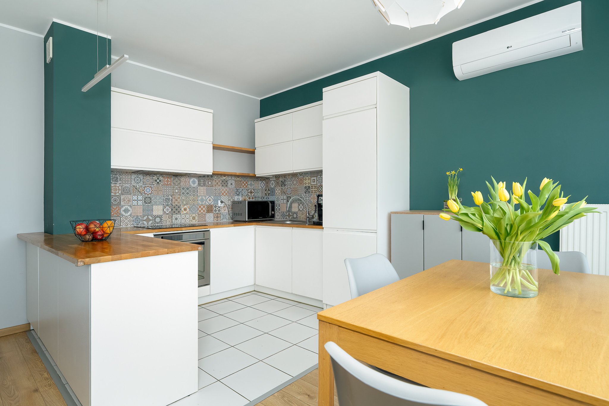 Ogrzewanie mieszkania oraz ciepłej wody realizowane jest przez gazowy piec dwufunkcyjny Immergas zlokalizowany w łazience, dzięki czemu można indywidualnie regulować temperaturą C.W.U. oraz temperaturą w mieszkaniu.