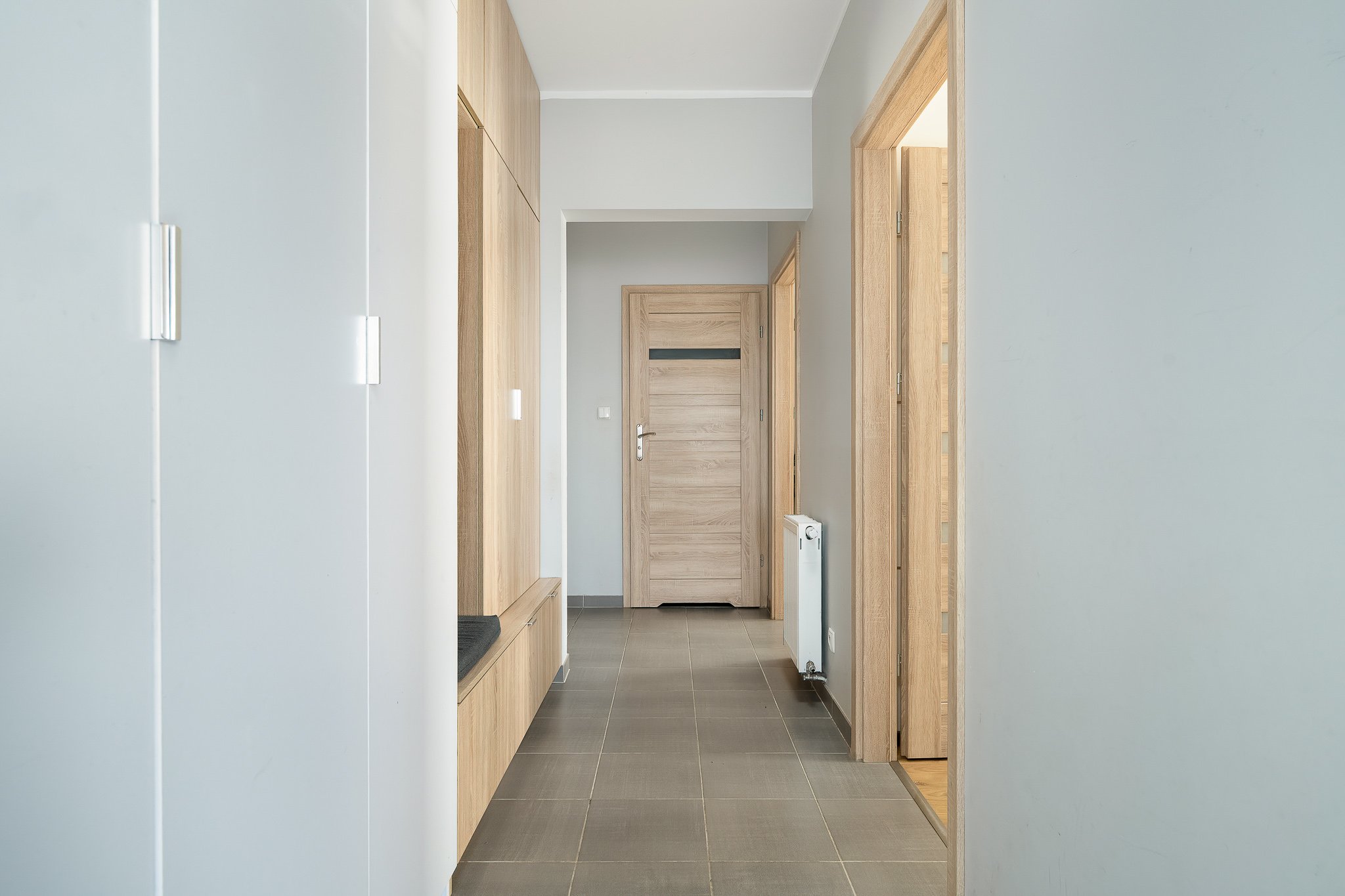 Przestronne, nowocześnie urządzone mieszkanie o powierzchni użytkowej 63,48 m2 znajduje się na pierwszym piętrze dwupiętrowego bloku wybudowanego w 2013 roku i składa się z dużego salonu z aneksem kuchennym, 2 ustawnych pokoi, łazienki i korytarza z bardzo funkcjonalną zabudową.