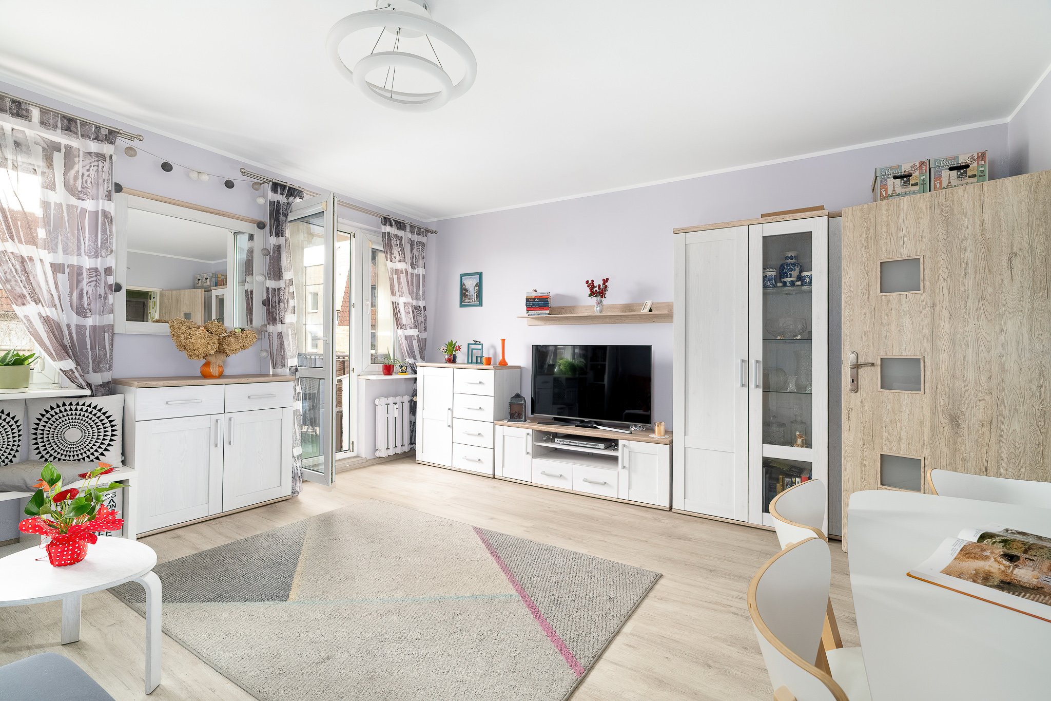 Przestronne i funkcjonalne mieszkanie o powierzchni 65,3m2 znajduje się w 6-kondygnacyjnym budynku z 1993 roku. Mieszkanie jest jasne i ustawne, a naturalne światło dociera do wnętrza przez cały dzień. Salon z wyjściem na balkon stanowi idealne miejsce na strefę dzienną, umożliwiając jednocześnie wydzielenie części wypoczynkowej i jadalnianej.