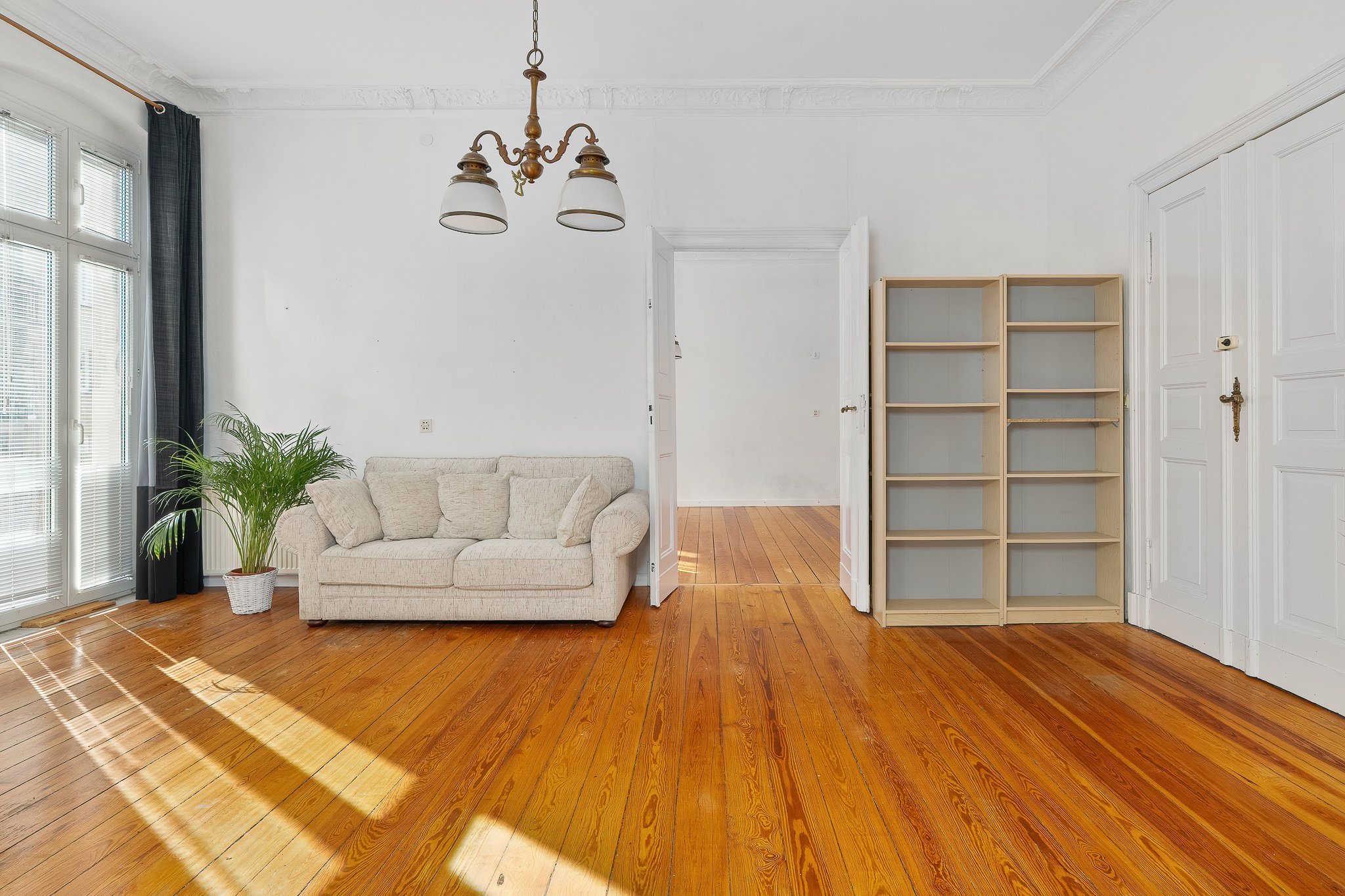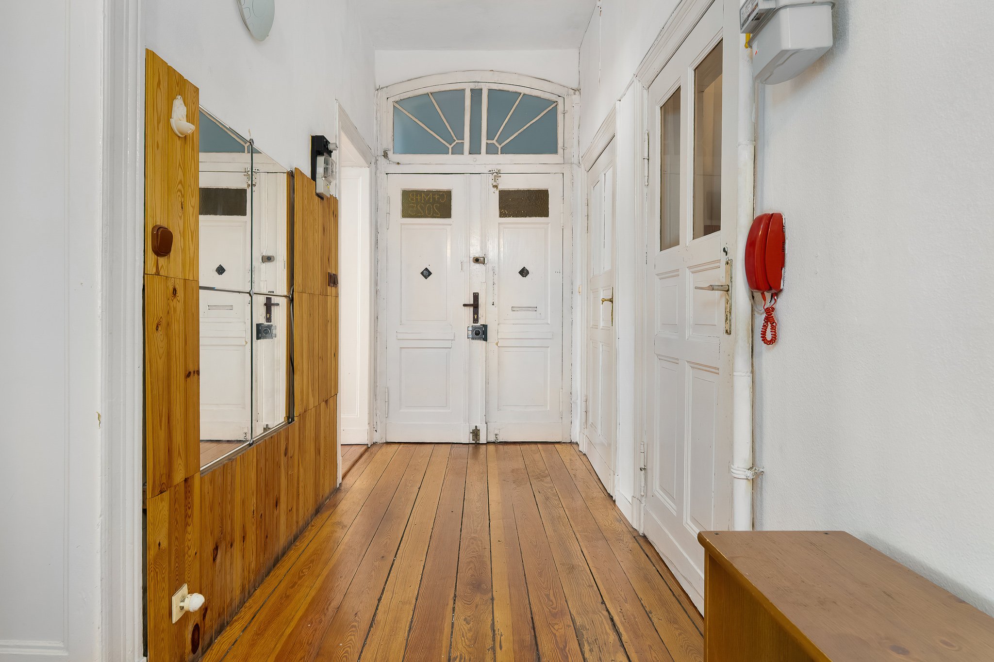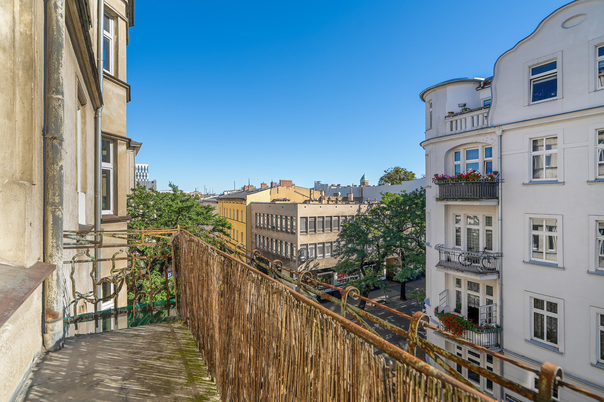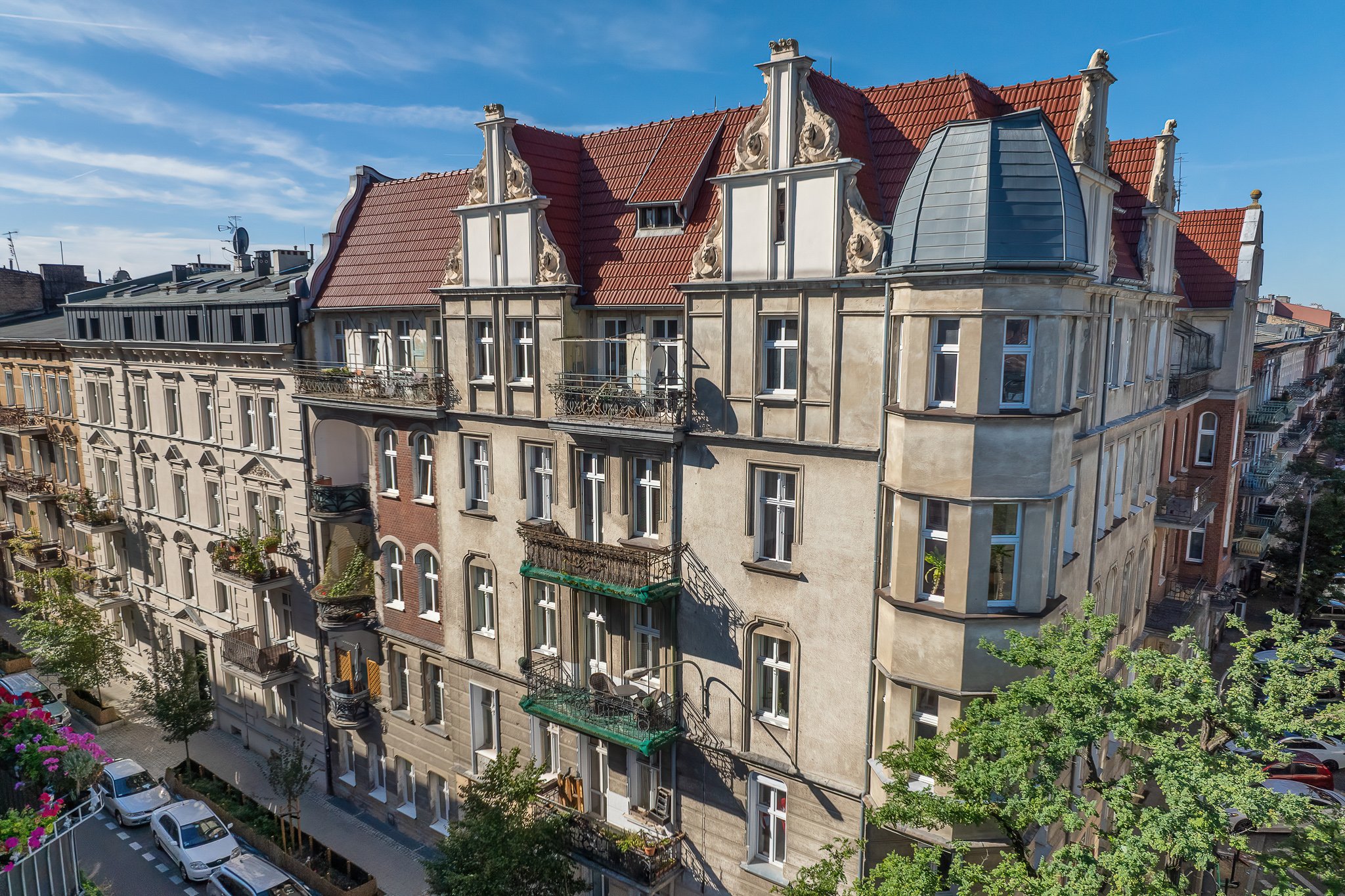 Lokal o powierzchni 159,80 m2 znajduje się na trzecim piętrze w 7- kondygnacyjnej kamienicy z przełomu XIX i XX wieku. Na metraż lokalu składają się: cztery przestronne pokoje, kuchnia oraz duże pomieszczenie gospodarcze (dawna służbówka), łazienka, korytarz oraz dwa balkony. Ogromnym atutem mieszkania jest przestronność i ustawność pokoi oraz duży korytarz. Mieszkanie zachwyca wyjątkowymi detalami – pięknymi zdobieniami na sufitach, okazałymi, dwuskrzydłowymi drzwiami, szlachetną drewnianą podłogą oraz imponującą wysokością pomieszczeń. Dodatkowym atutem jest południowo-wschodnia ekspozycja, która sprawia, że wnętrza są pełne naturalnego światła i ciepłej, przytulnej atmosfery. Do mieszkania przynależą dwie piwnice o łącznej powierzchni 19,30 m², stanowiącą dodatkową przestrzeń do przechowywania.