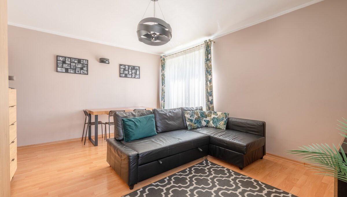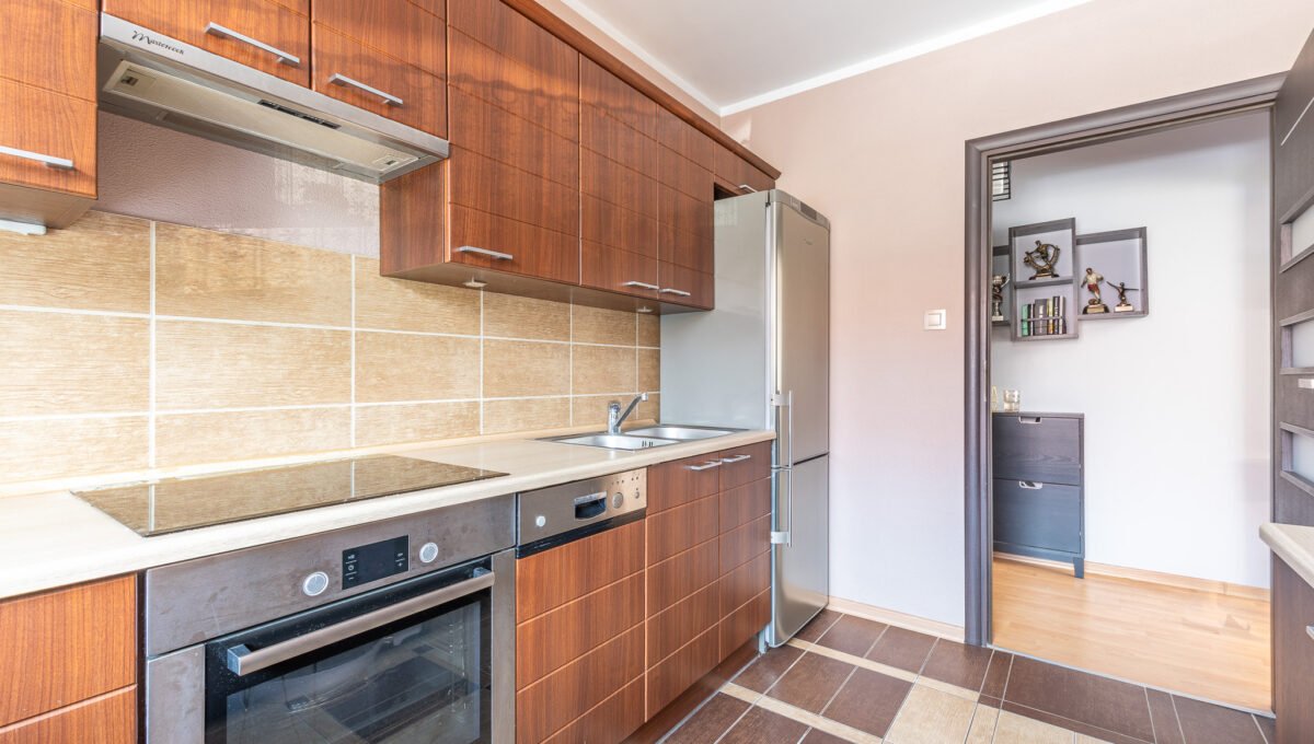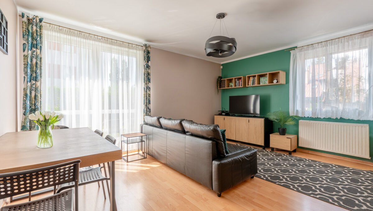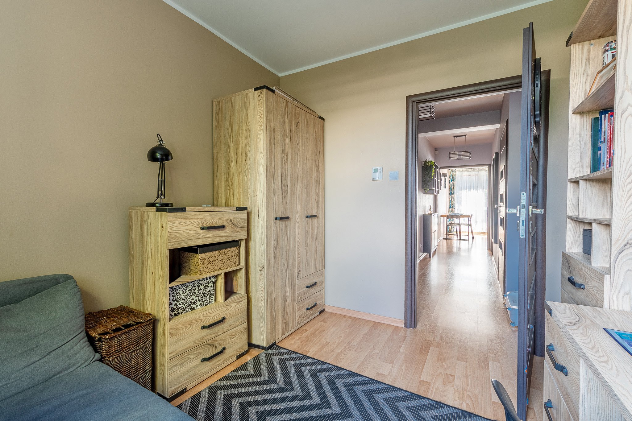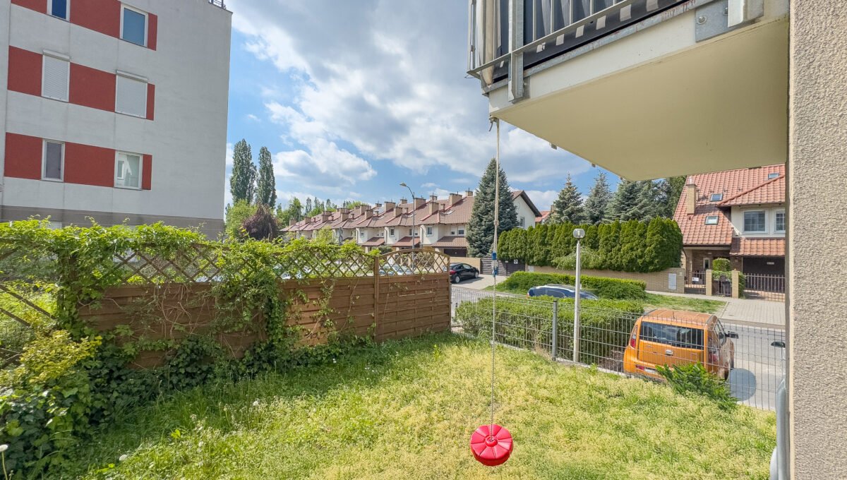 Mieszkanie o powierzchni 63,04 m2 znajduje się na parterze w 6- kondygnacyjnym bloku z 2010 roku. Na metraż lokalu składa się: salon, dwa pokoje, kuchnia, łazienka, osobne wc, korytarz oraz mały ogródek – do wyłącznego korzystania. Kuchnia wyposażona w płytę indukcyjną, zmywarkę, lodówkę z zamrażarką oraz piekarnik elektryczny.