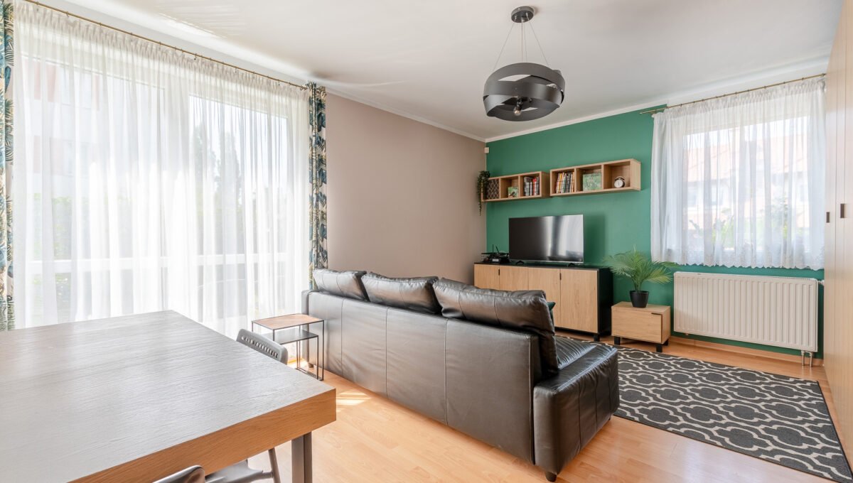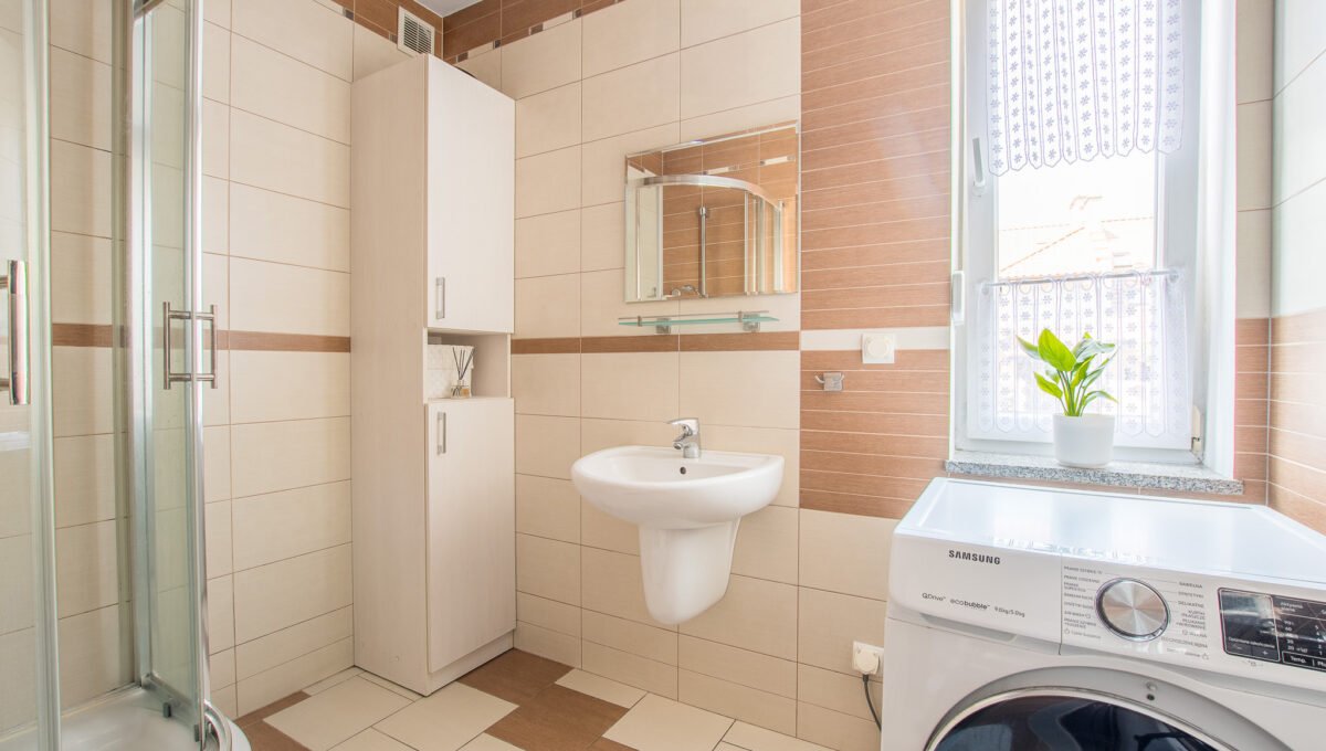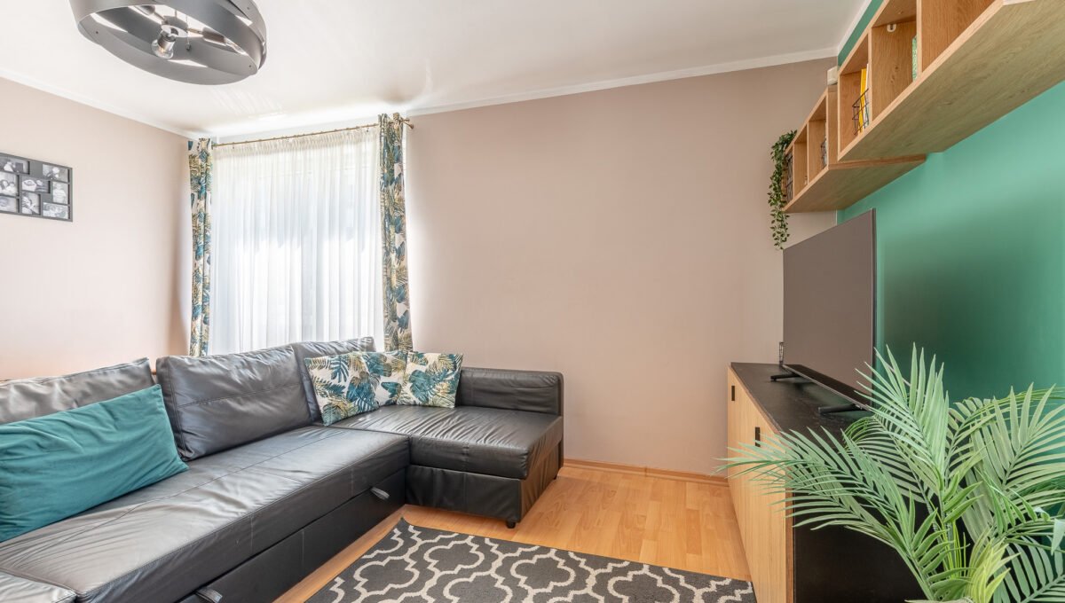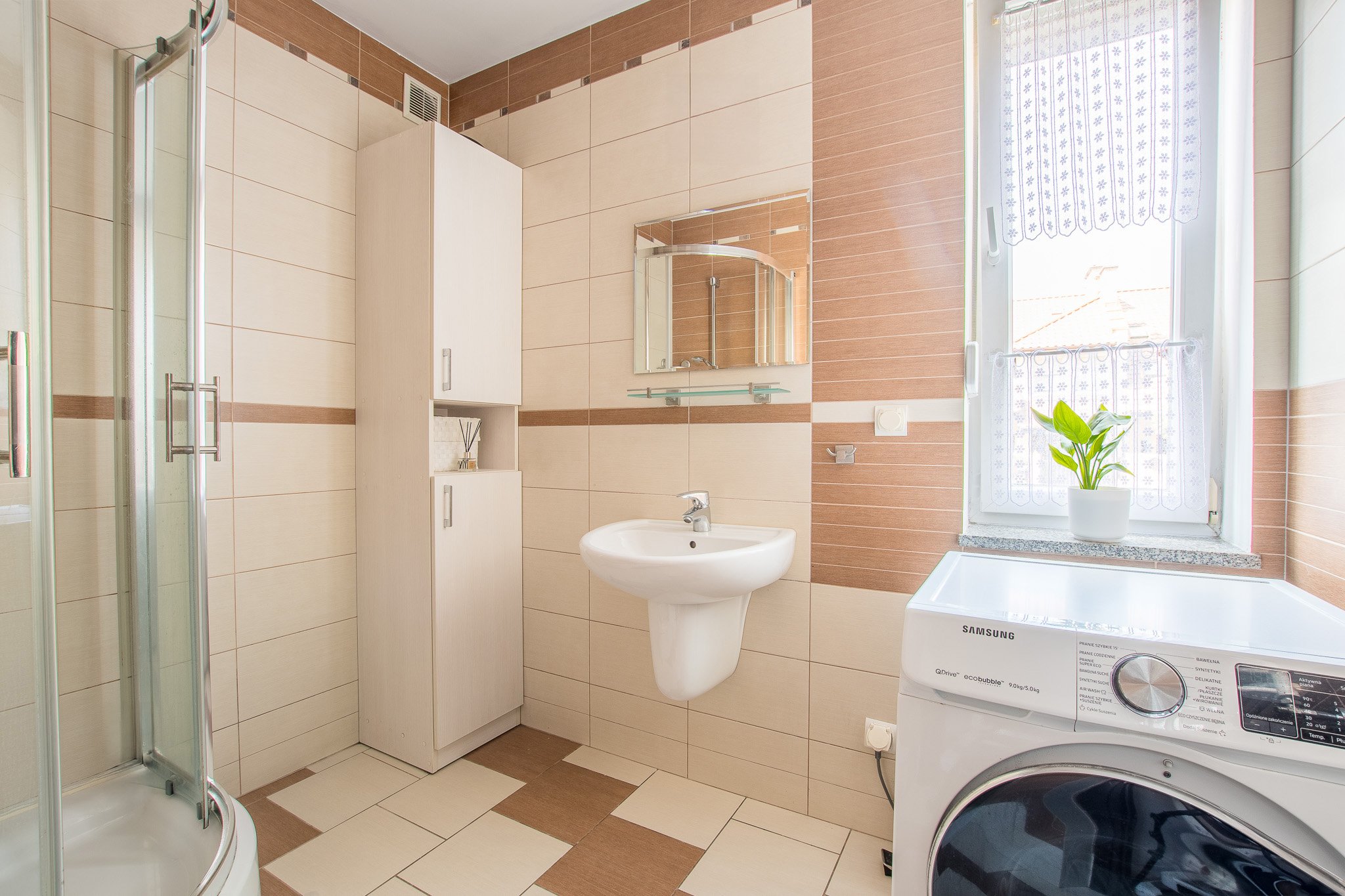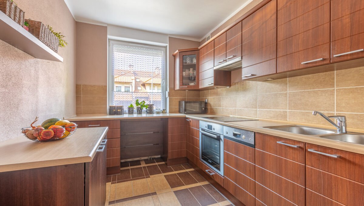 Mieszkanie o powierzchni 63,04 m2 znajduje się na parterze w 6- kondygnacyjnym bloku z 2010 roku. Na metraż lokalu składa się: salon, dwa pokoje, kuchnia, łazienka, osobne wc, korytarz oraz mały ogródek – do wyłącznego korzystania. Kuchnia wyposażona w płytę indukcyjną, zmywarkę, lodówkę z zamrażarką oraz piekarnik elektryczny.