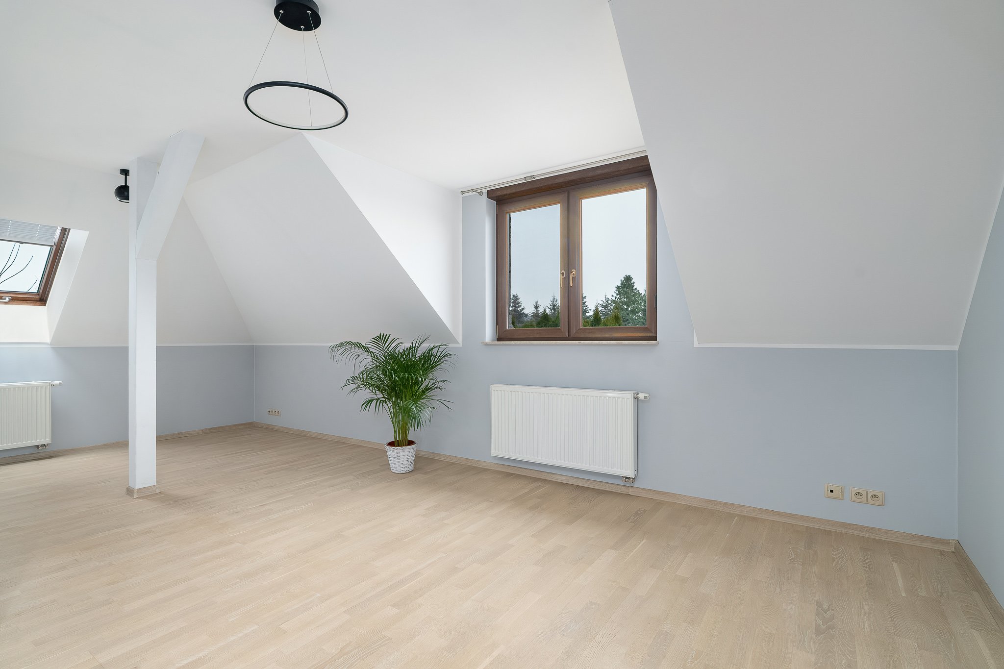 Dom jednorodzinny, dwukondygnacyjny z poddaszem użytkowym, niepodpiwniczony o powierzchni całkowitej 248,36, położony jest na działce o powierzchni 875,0 m2. Budynek został wybudowany w 2008 roku. Na terenie działki znajduje się pięknie zagospodarowany ogród z tarasem oraz usytuowane jacuzzi firmy SUNDANCE SPAS. W domu zainstalowano podłogowy system grzewczy oraz klimatyzację w salonie oraz sypialni.