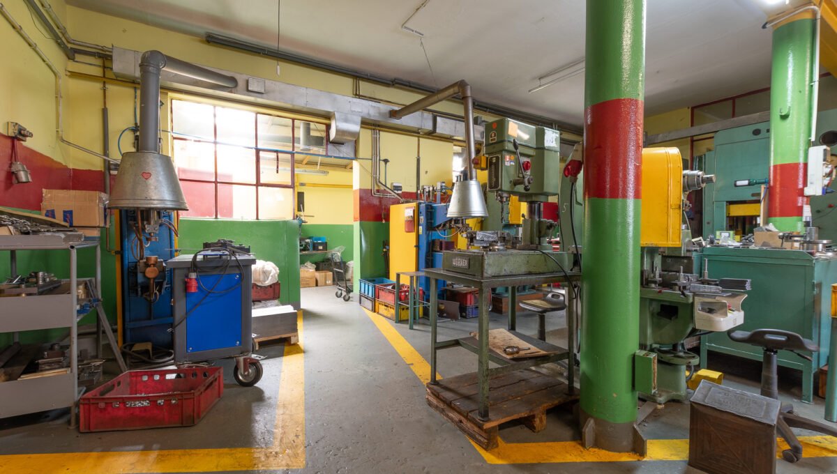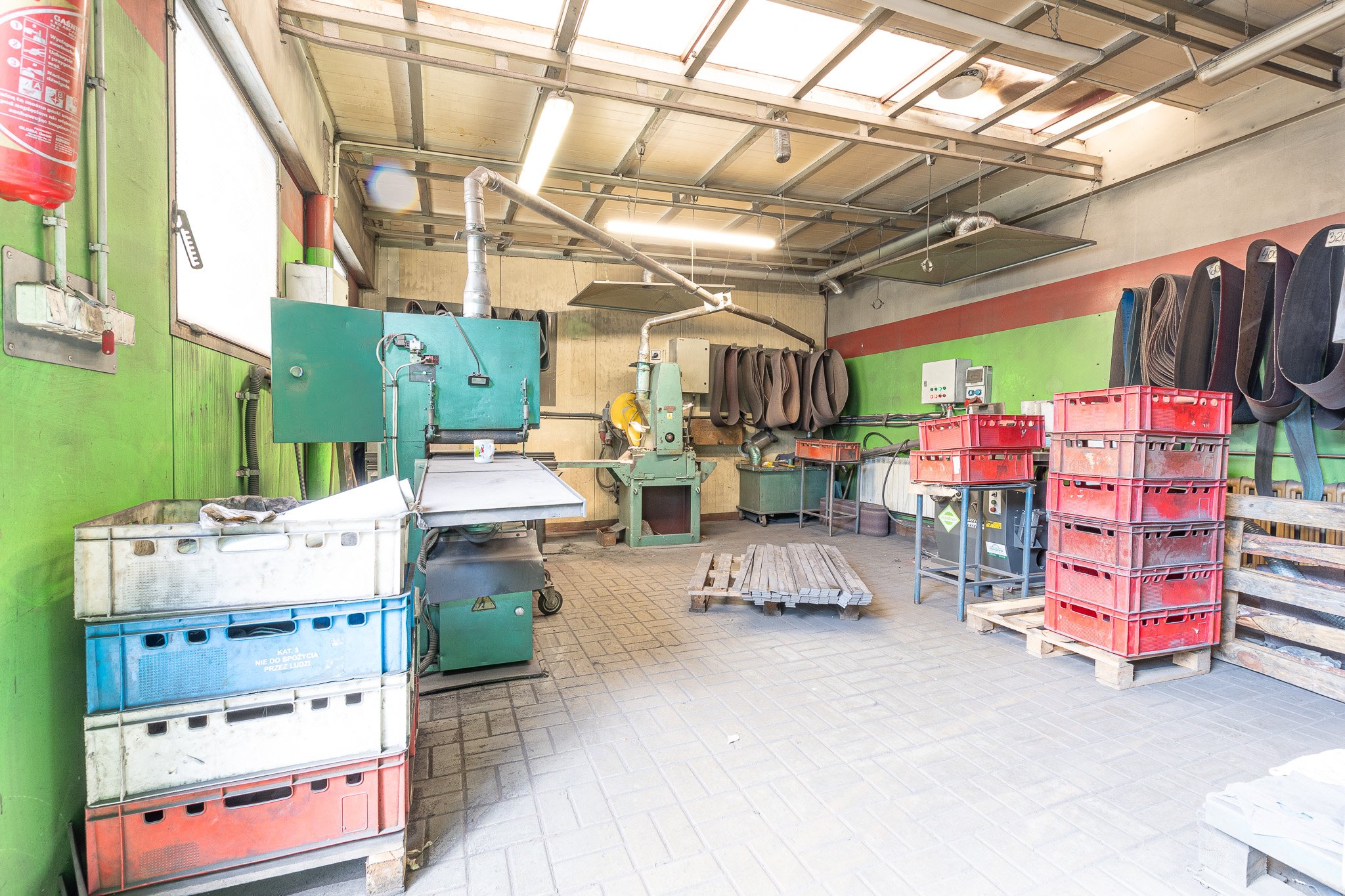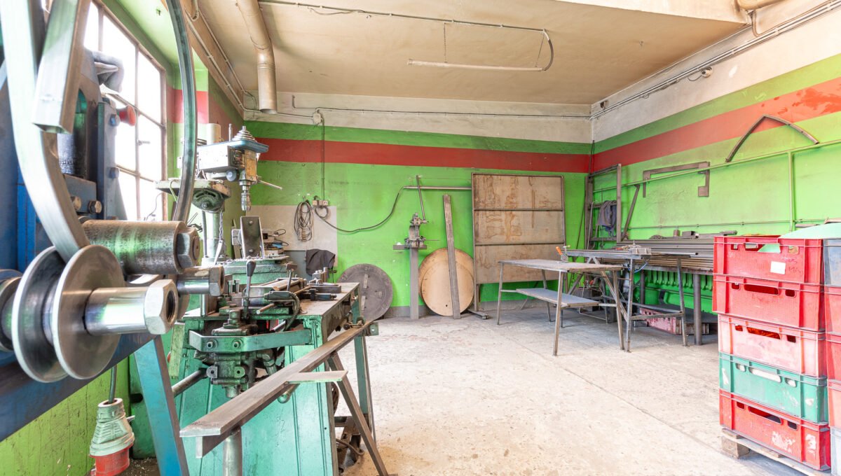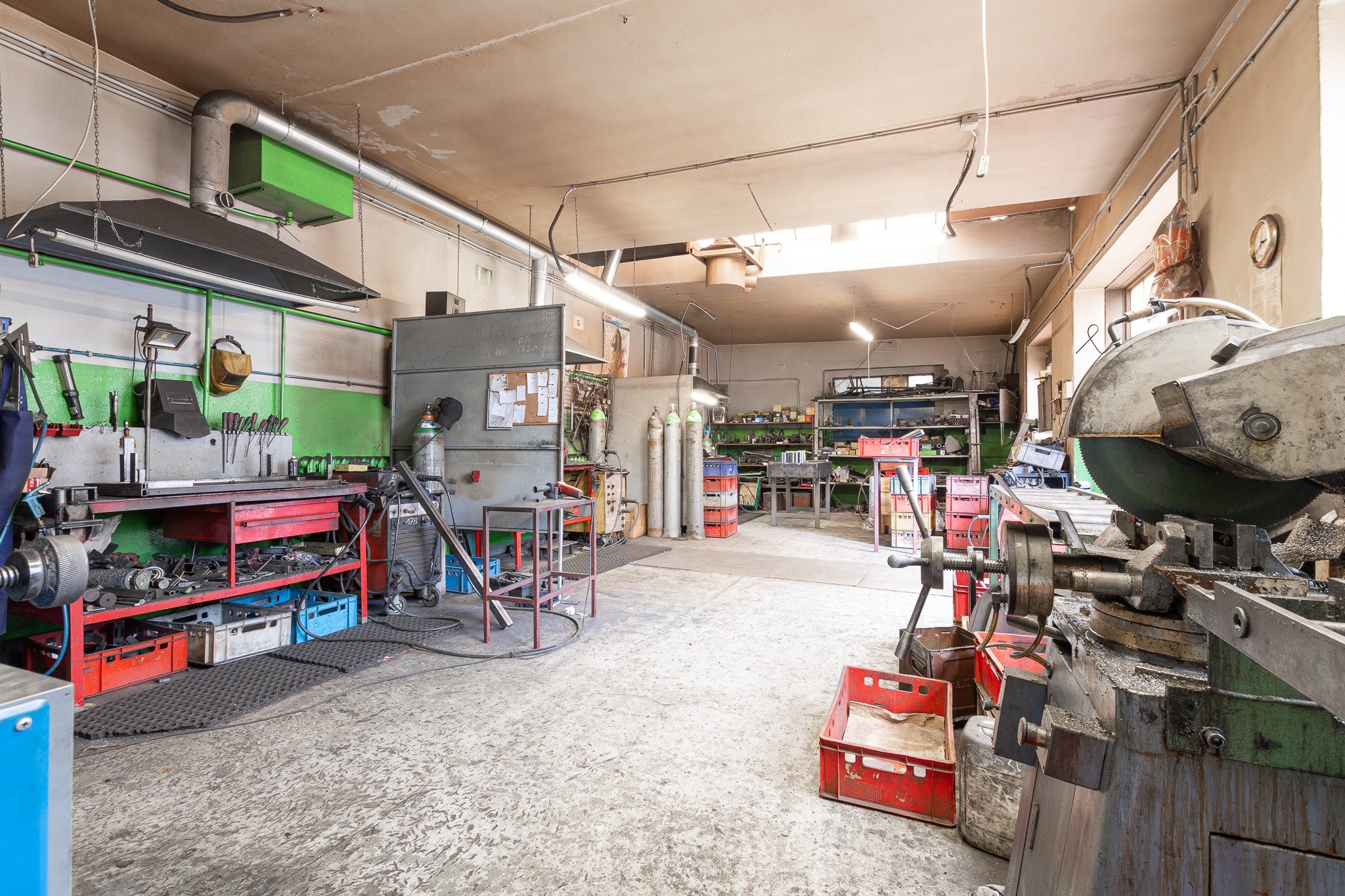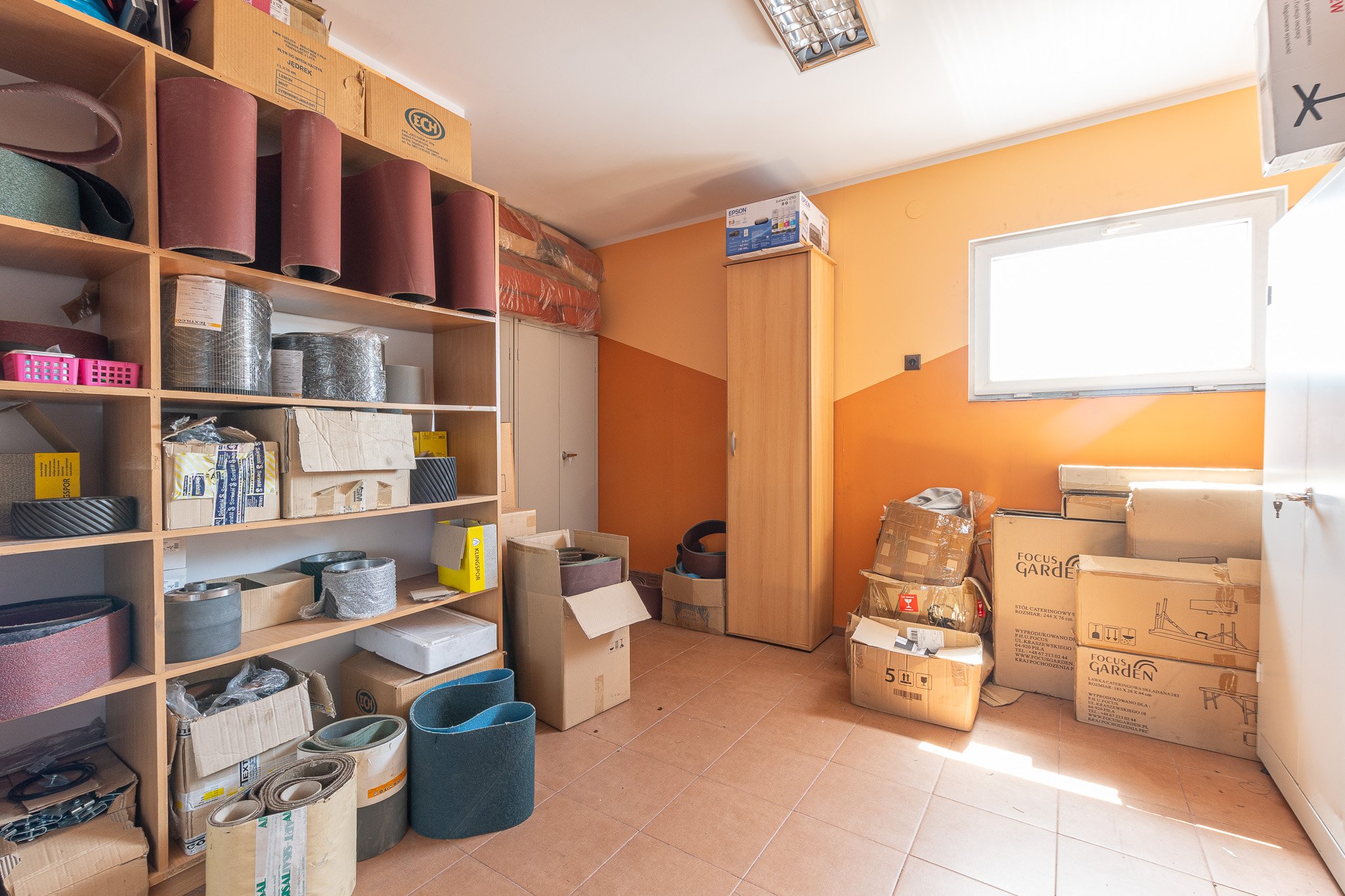 Trzykondygnacyjny budynek warsztatowy z zapleczem socjalnym, częścią biurowo-mieszkalną oraz piwnicą o powierzchni użytkowej 594,85 m2, wyróżnia się funkcjonalnym i dobrze przemyślanym układem pomieszczeń. Na parterze znajduje się przestrzeń biurowa, dostosowana do potrzeb administracyjnych i organizacyjnych oraz zaplecze socjalne; szatnia, jadalnia z aneksem kuchennym oraz łazienki. Również na parterze zlokalizowana jest hala warsztatowa oraz pomieszczenia warsztatowe. Piętro pełni funkcję mieszkalną – znajduje się tam kuchnia oraz pokoje, które mogą służyć jako pomieszczenia wypoczynkowe dla pracowników lub ich zakwaterowania. Taki podział zapewnia wygodne warunki zarówno do pracy, jak i codziennego użytkowania. Część mieszkalna budynku została wyposażona w klimatyzację. W budynku znajduje się również piwnica, która pełni funkcję pomieszczenia technicznego.