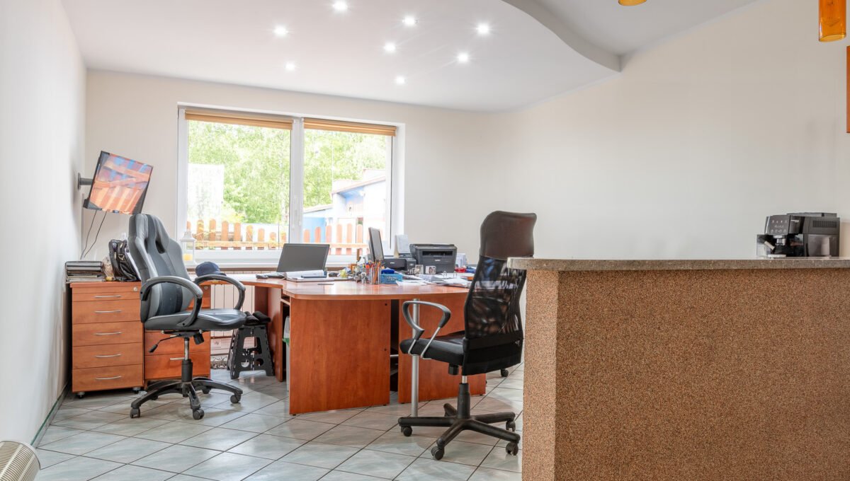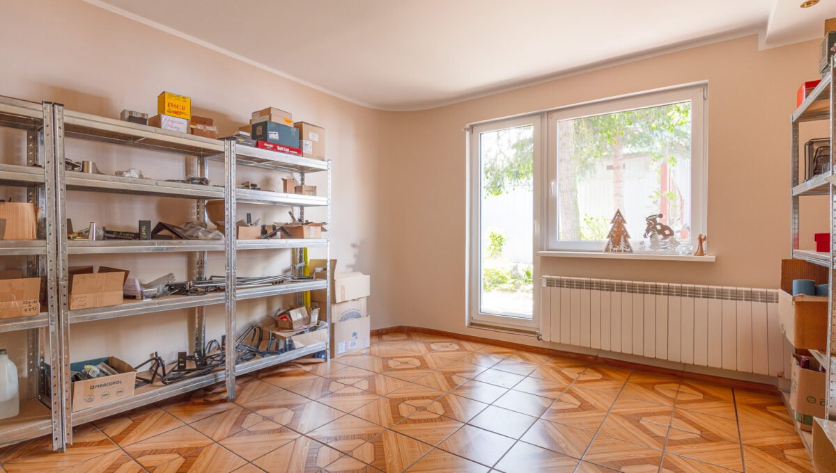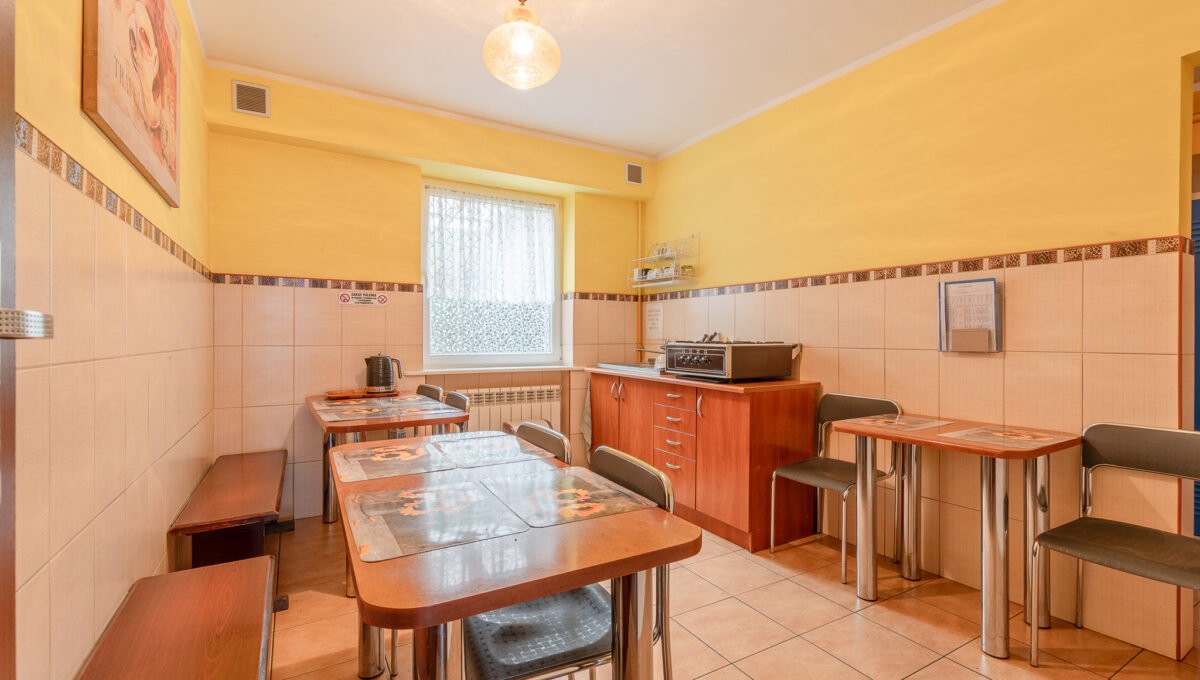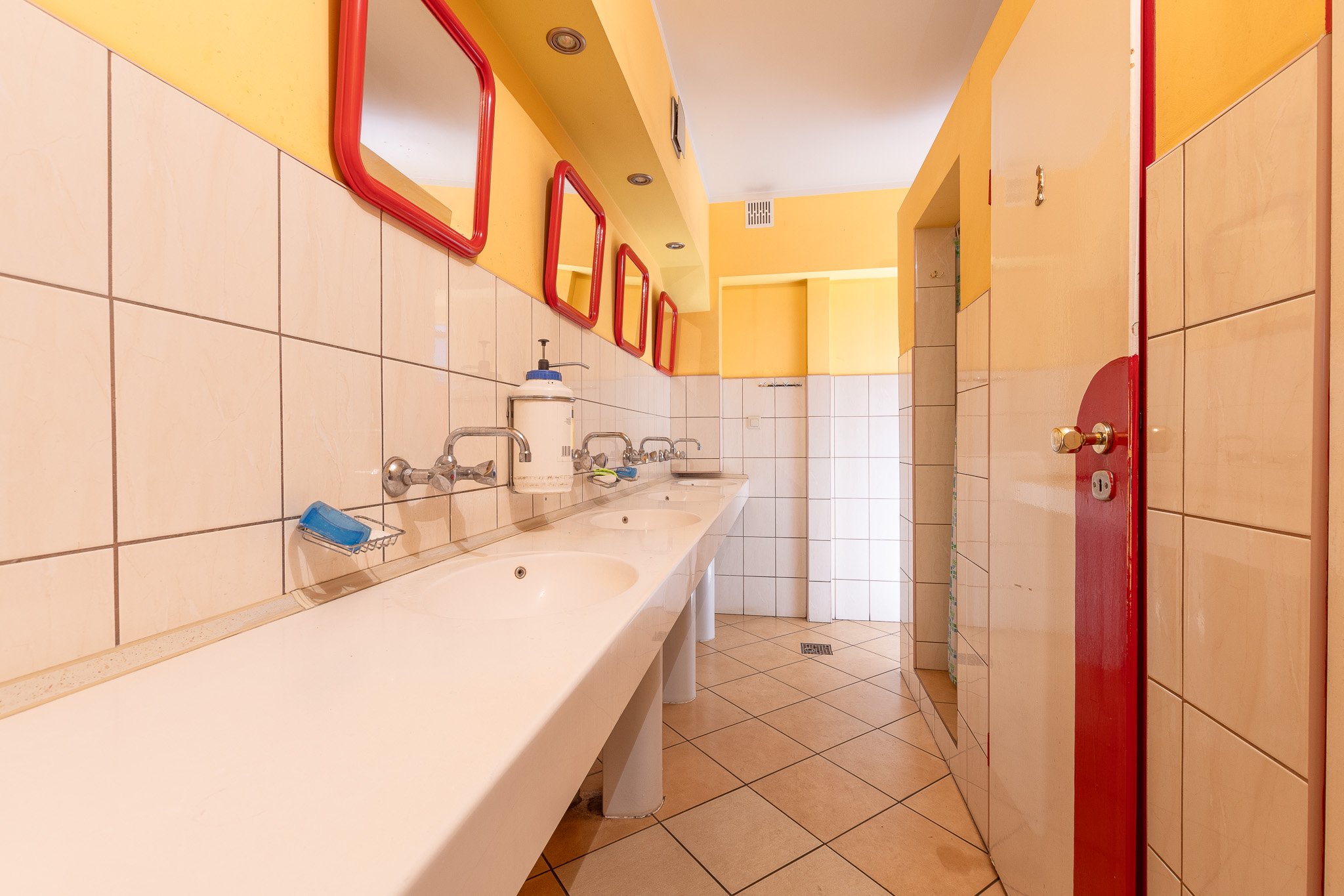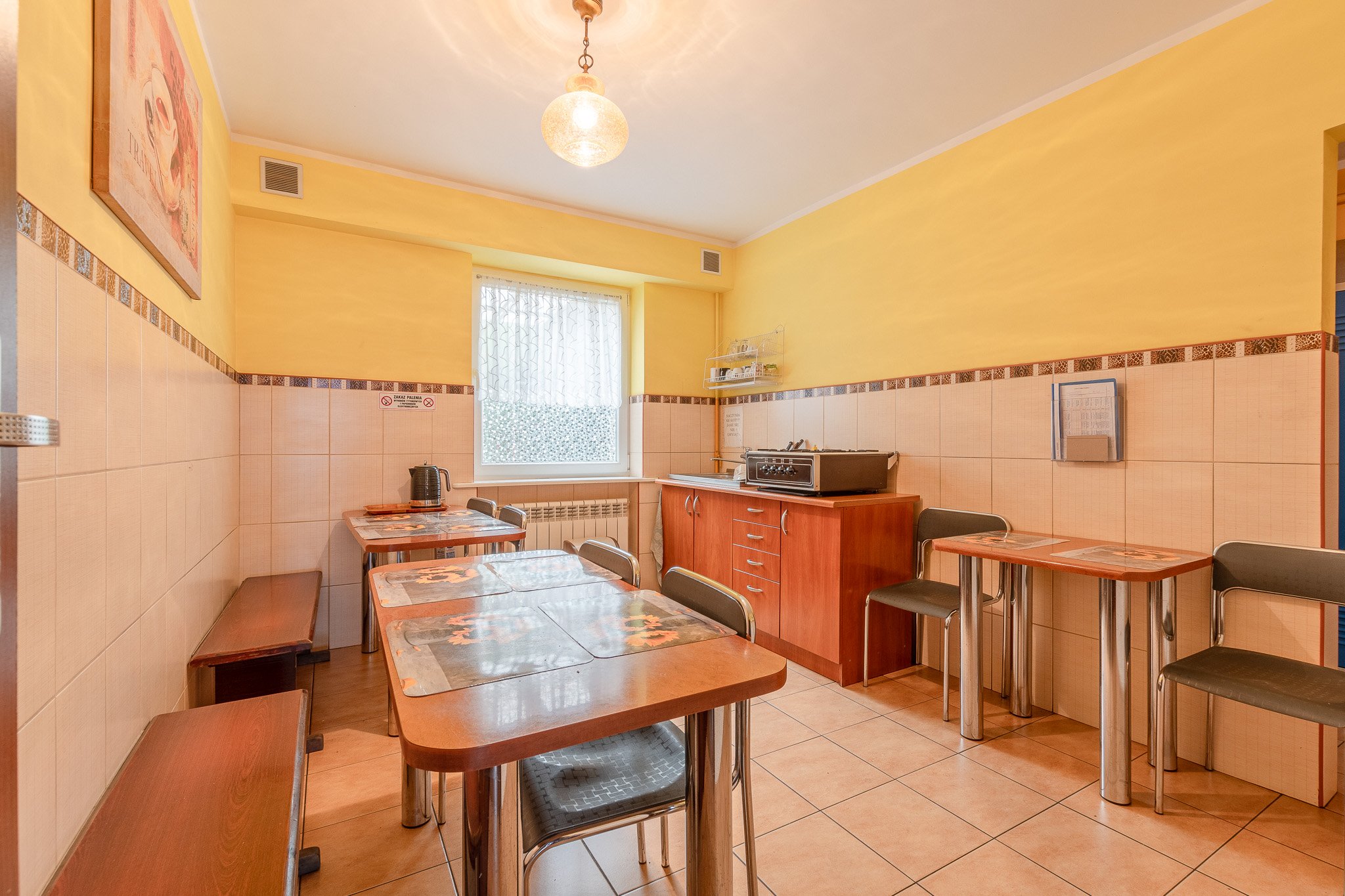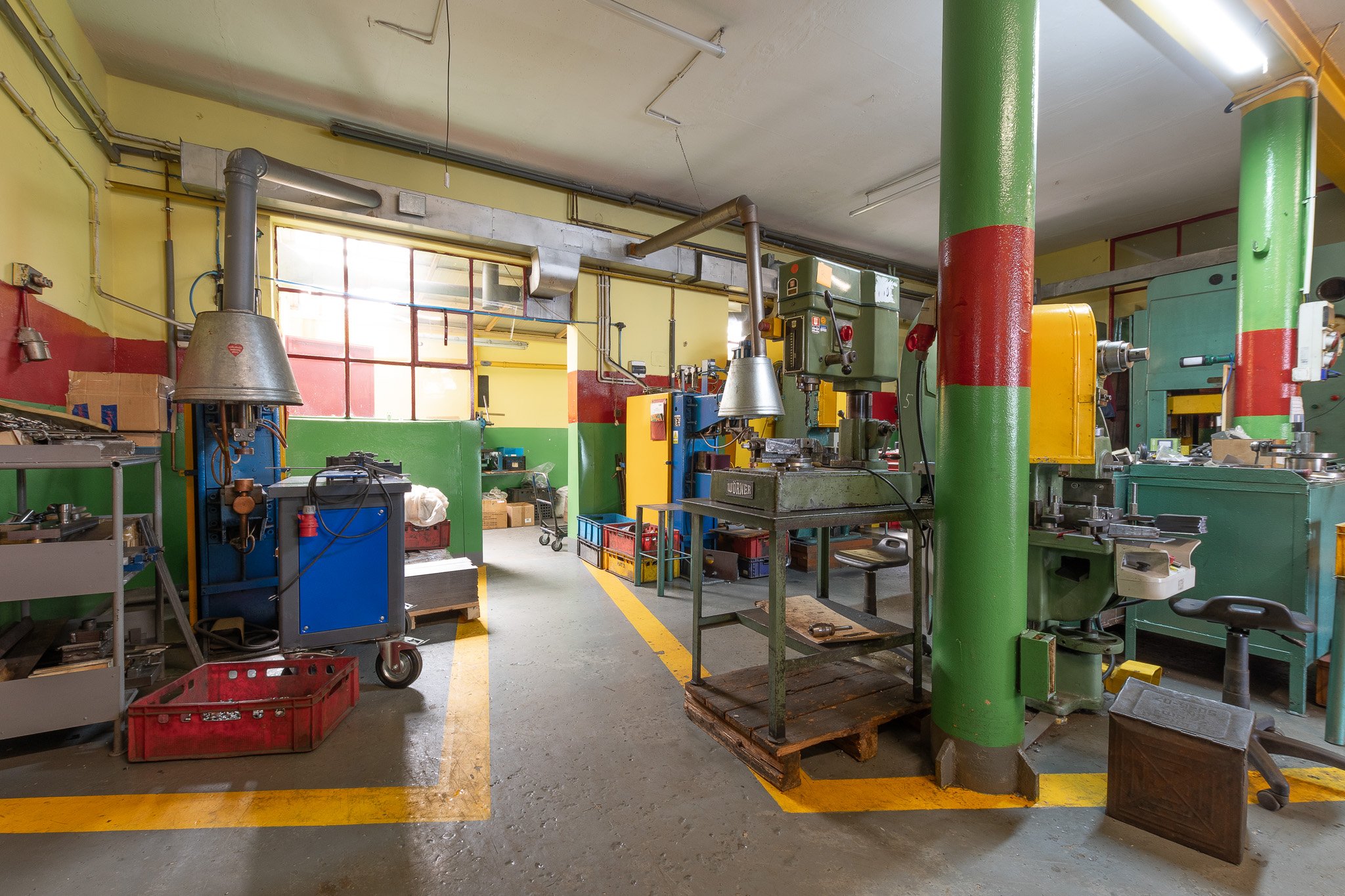 Trzykondygnacyjny budynek warsztatowy z zapleczem socjalnym, częścią biurowo-mieszkalną oraz piwnicą o powierzchni użytkowej 594,85 m2, wyróżnia się funkcjonalnym i dobrze przemyślanym układem pomieszczeń. Na parterze znajduje się przestrzeń biurowa, dostosowana do potrzeb administracyjnych i organizacyjnych oraz zaplecze socjalne; szatnia, jadalnia z aneksem kuchennym oraz łazienki. Również na parterze zlokalizowana jest hala warsztatowa oraz pomieszczenia warsztatowe. Piętro pełni funkcję mieszkalną – znajduje się tam kuchnia oraz pokoje, które mogą służyć jako pomieszczenia wypoczynkowe dla pracowników lub ich zakwaterowania. Taki podział zapewnia wygodne warunki zarówno do pracy, jak i codziennego użytkowania. Część mieszkalna budynku została wyposażona w klimatyzację. W budynku znajduje się również piwnica, która pełni funkcję pomieszczenia technicznego.