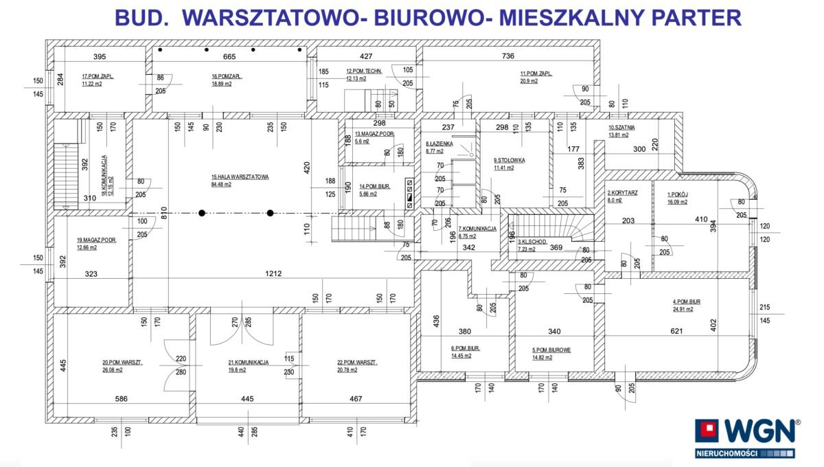 Oferujemy na sprzedaż nieruchomość o charakterze przemysłowym, zlokalizowaną w Budzyniu, w województwie wielkopolskim. W skład obiektu wchodzą trzy budynki: pierwszy – budynek warsztatowo- magazynowy z funkcją mieszkalną o powierzchni użytkowej 594,85 m2 , oraz drugi warsztatowo-magazynowy o powierzchni użytkowej 241,34 m2. Na terenie nieruchomości znajduje się również wiata magazynowa 32,82 m2, zapewniająca dodatkową przestrzeń do przechowywania materiałów lub towarów.