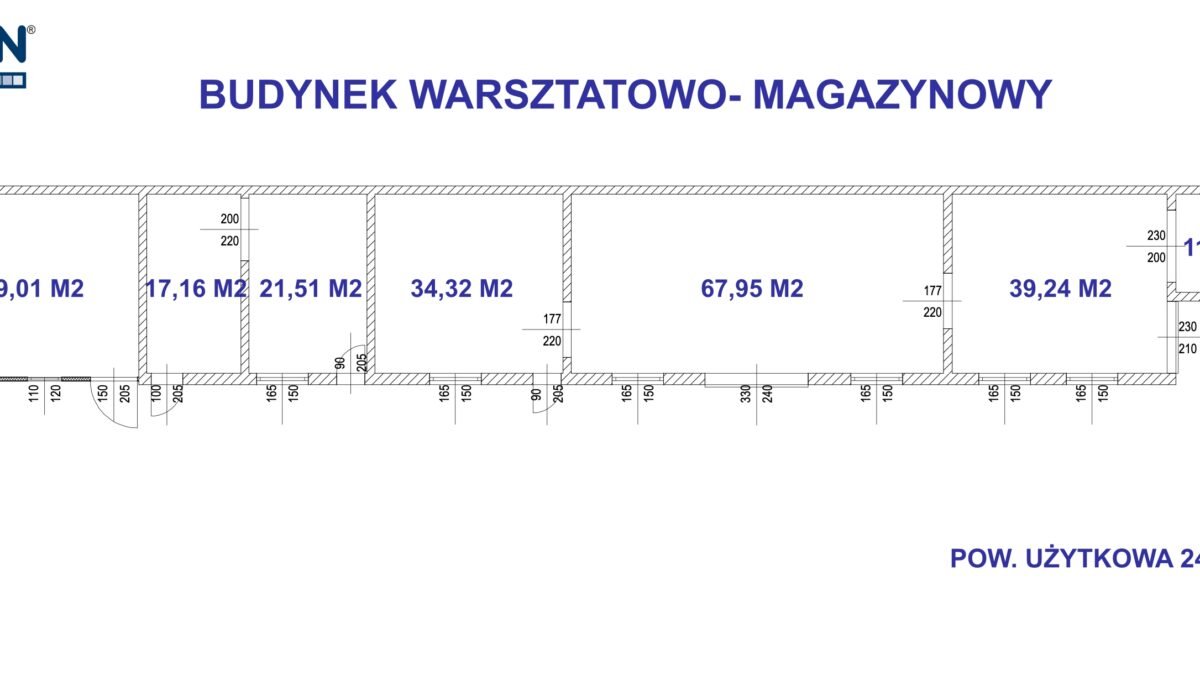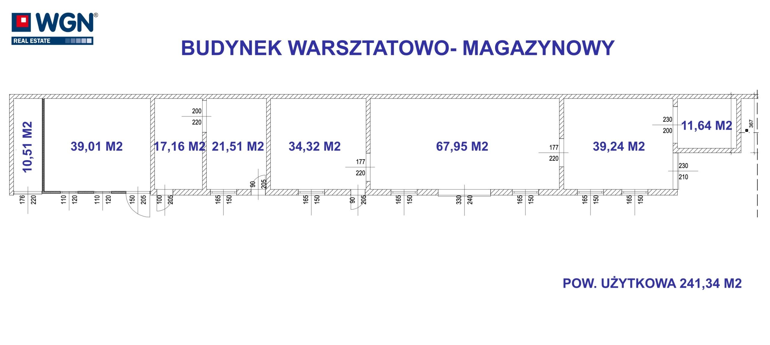 Powierzchnia użytkowa budynku warsztatowo- magazynowego: 241,34 m2