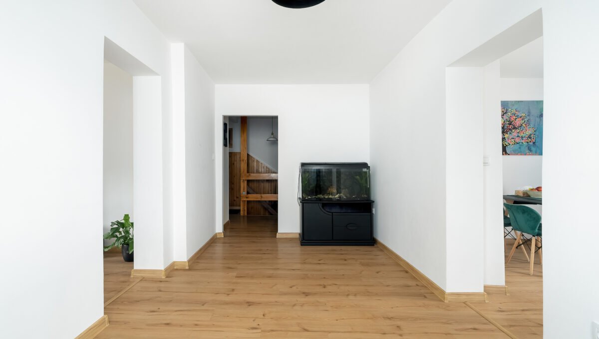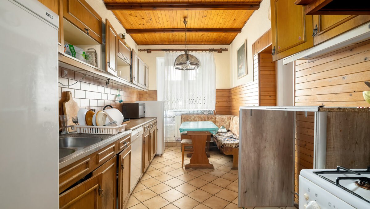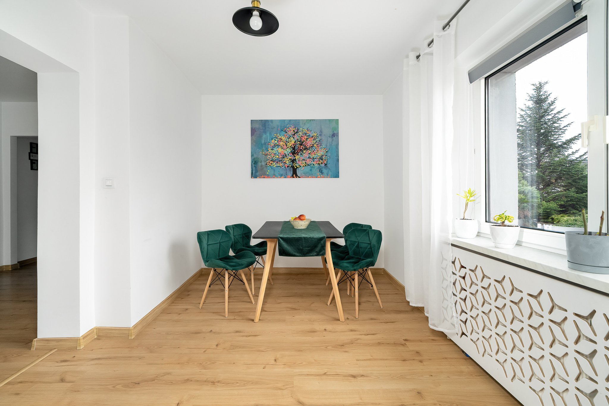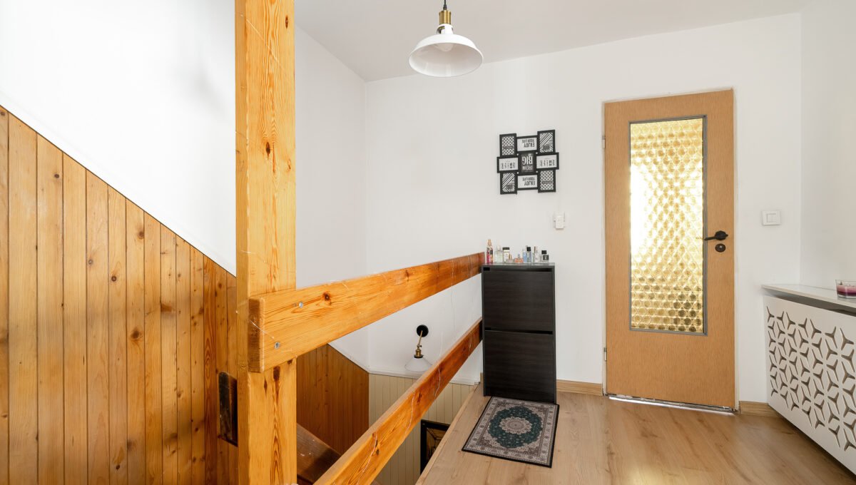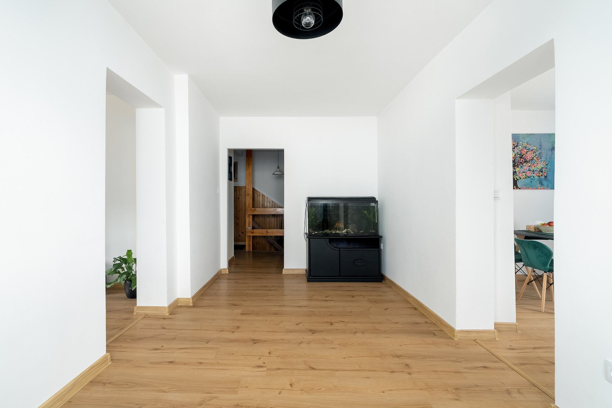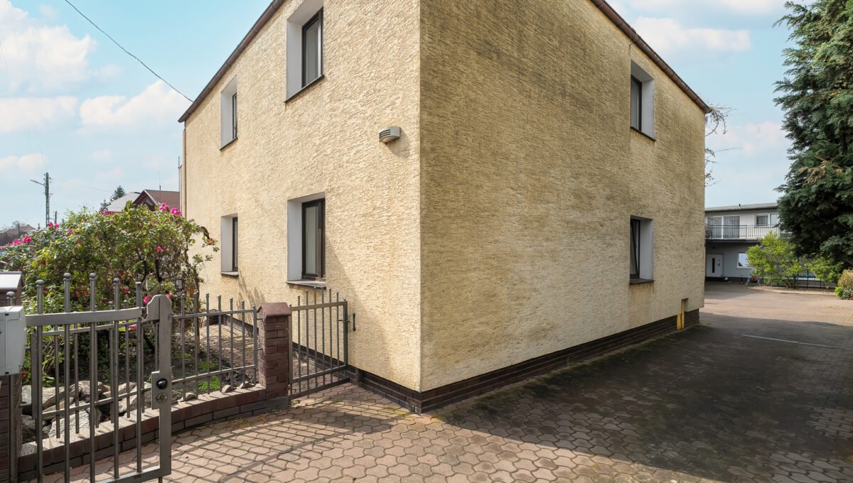 Dom o powierzchni ok. 150 m2 składa się z dwóch kondygnacji: parteru oraz piętra. Na parterze znajdują się dwa pokoje, kuchnia, łazienka, kotłownia, spiżarnia, korytarz oraz przedsionek. Na pierwszym piętrze – trzy pokoje, łazienka oraz kuchnia. Dodatkowo w najbliższej okolicy domu, na ulicy znajduje się spora liczba bezpłatnych miejsc parkingowych.