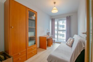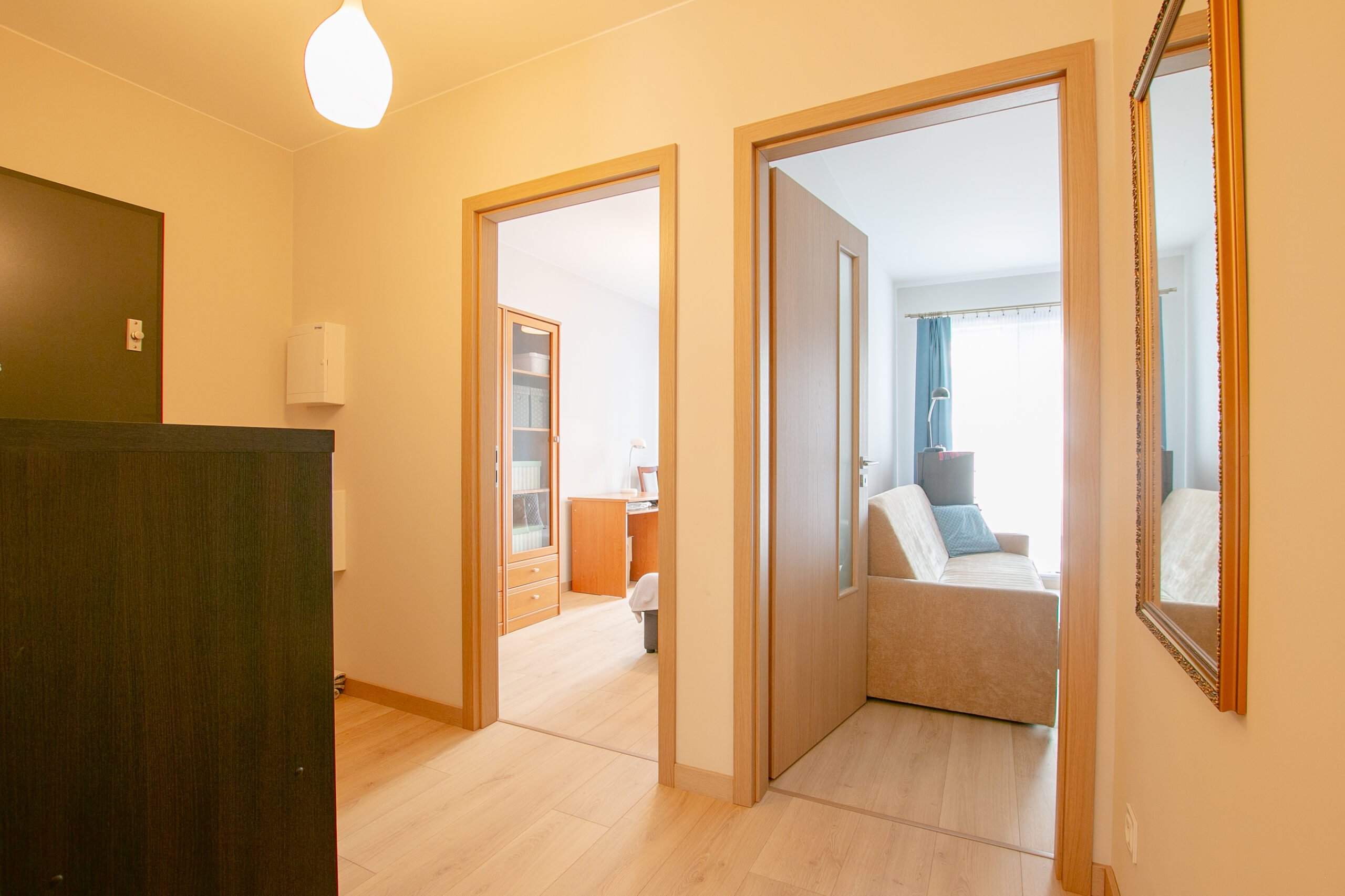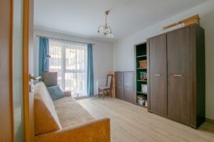 Na metraż lokalu składają się: przestronny salon połączony z aneksem kuchennym, wygodna sypialnia, ustawny pokój, duża łazienka oraz przedsionek. Kuchnia wyposażona jest we wszystkie niezbędne sprzęty AGD: piekarnik, płytę indukcyjną, okap, lodówkę z zamrażarką. Zastosowane oświetlenie oraz wyposażenie sprawia iż mieszkanie jest nowoczesne, przytulne oraz ciepłe. Z salonu jest możliwość wyjścia na balkon. Do mieszkania jest doprowadzony światłowód. Ekspozycja okien na kierunki wschód-zachód sprawia, że mieszkanie jest niezwykle jasne, znakomicie doświetlone oraz występuje w nim odpowiednia cyrkulacja powietrza. Mieszkanie jest idealną propozycją dla pary, rodziny lub jako inwestycja pod wynajem!